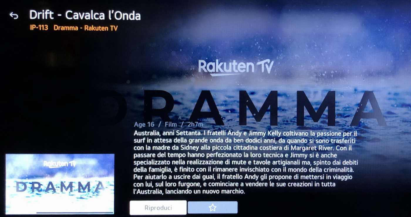 La sezione “TV & Movies” è quella più ricca di canali italiani come Dramma, Azione, Cinema Segreto e Bizzarro Movies, alcuni dei quali prodotti sempre da RakutenTv e visibili gratuitamente via web come vi abbiamo spiegato in questo articolo.