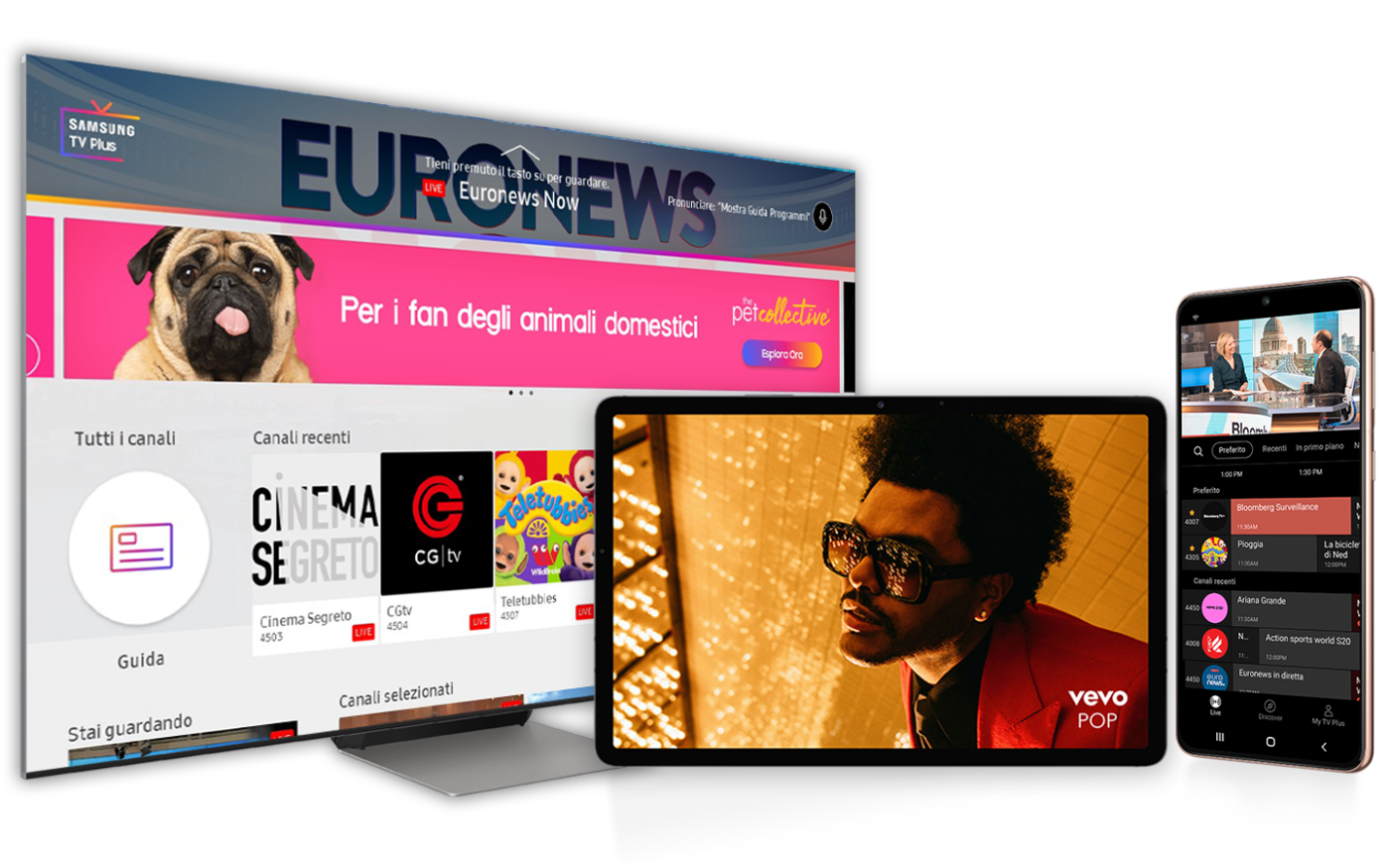 Troviamo anche diversi canali musicali (Vevo 90s/00s, Vevo Pop, Trace Urban), d’informazione (Euronews, Bloomberg TV+) e intrattenimento per grandi e piccini (Super! Spongebob, Teletubbies, Duck TV, Mondo TV Kids, Amuse Animation).