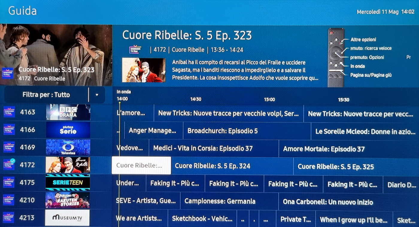 Elenco parziale dei canali inclusi in Samsung TV Plus