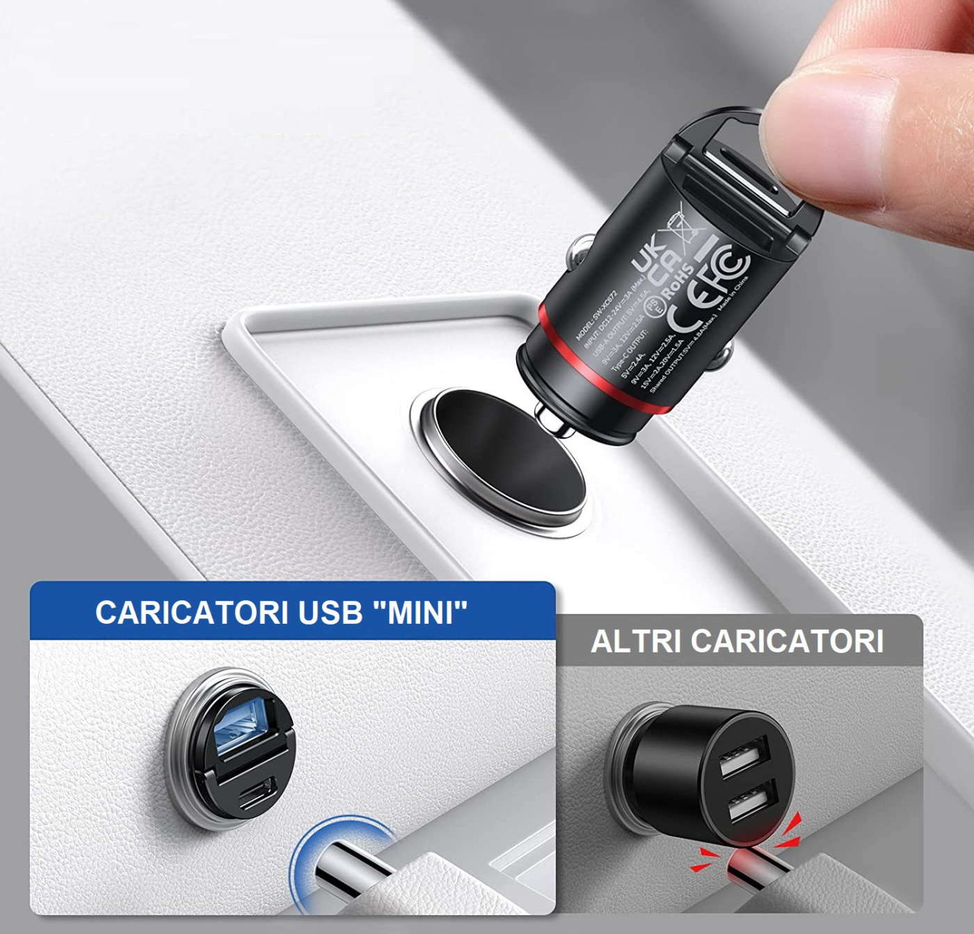 La stragrande maggioranza dei caricabatteria USB da auto è dotata di due porte USB per la ricarica simultanea di due diversi dispositivi come smartphone, tablet, powerbank, smartwatch, notebook, ecc.