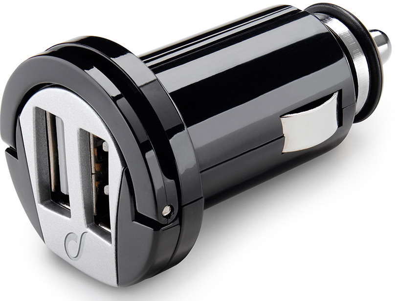 Caricatore con due porte USB-A capaci di erogare fino a 2A con modulazione intelligente della corrente per salvaguardare la batteria e ottimizzare i tempi di carica. È dotato di spia led di accensione e anello per facilitare l’estrazione. La doppia colorazione nero lucido e grigio si adatta perfettamente alle plance delle auto moderne.