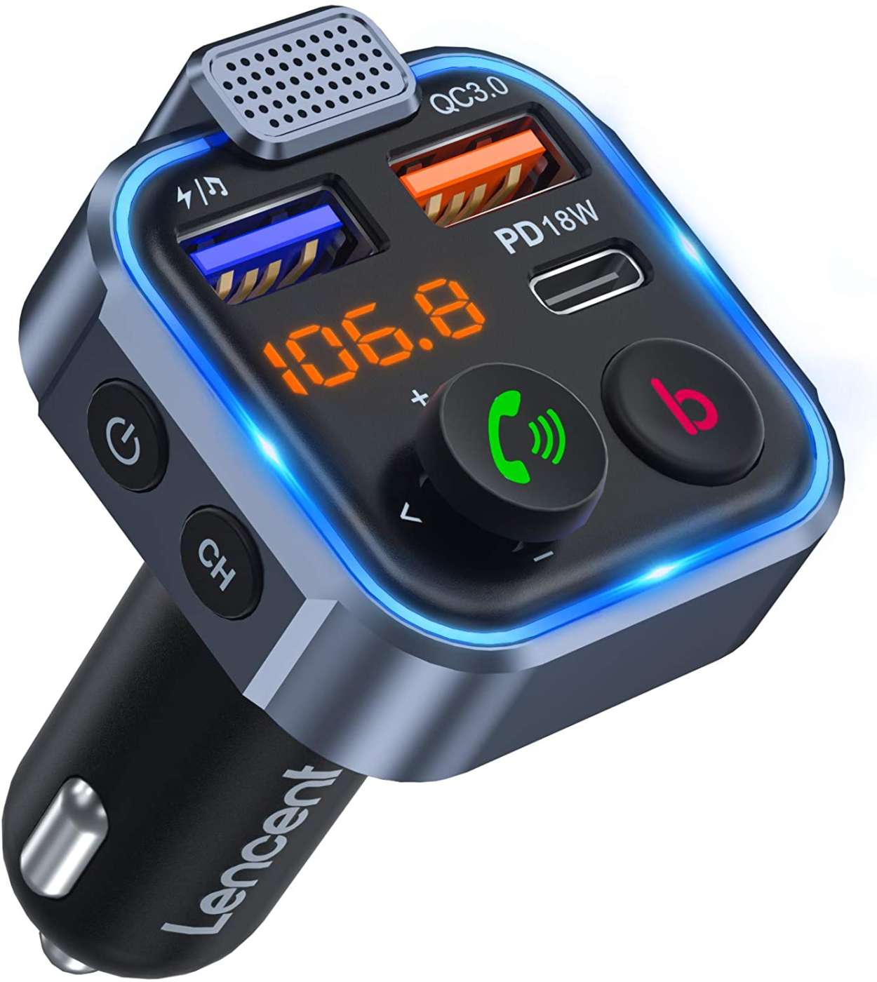 Lencent BT23 non è un semplice caricabatterie USB da auto ma un dispositivo multimediale e multifunzione ideale per le vetture più vecchie con autoradio senza vivavoce Bluetooth né MP3 player. Le tre porte USB (2 tipo A e 1 tipo C) supportano le tecnologie QC 3.0 e PD (max 20 watt) e la riproduzione dei file musicali con chiavette USB (max 64GB). Si collega allo smartphone via Bluetooth 5.0 e trasmette l’audio in banda FM per l’ascolto tramite il sintonizzatore dell’autoradio. È dotato anche di voltmetro (tensione batteria), funzione vivavoce con microfono integrato (telefonate, assistenti vocali Google e Siri, ecc.) e illuminazione a led dinamica a ritmo di musica.