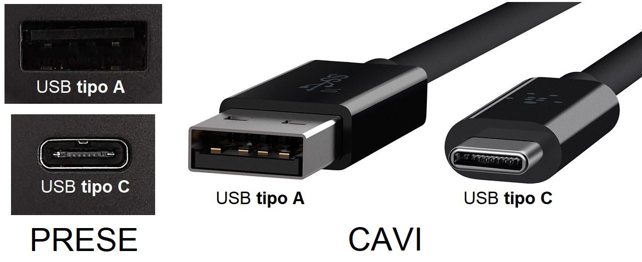 Esistono caricatori con una, due o più porte USB di tipo “A” (quelle grosse di forma rettangolare) e/o di tipo “C” (più piccole e reversibili) che forniscono una tensione ed una corrente fissa oppure variabile a seconda della tecnologia utilizzata e della ricarica supportata (normale, rapida, ultrarapida, ecc.).