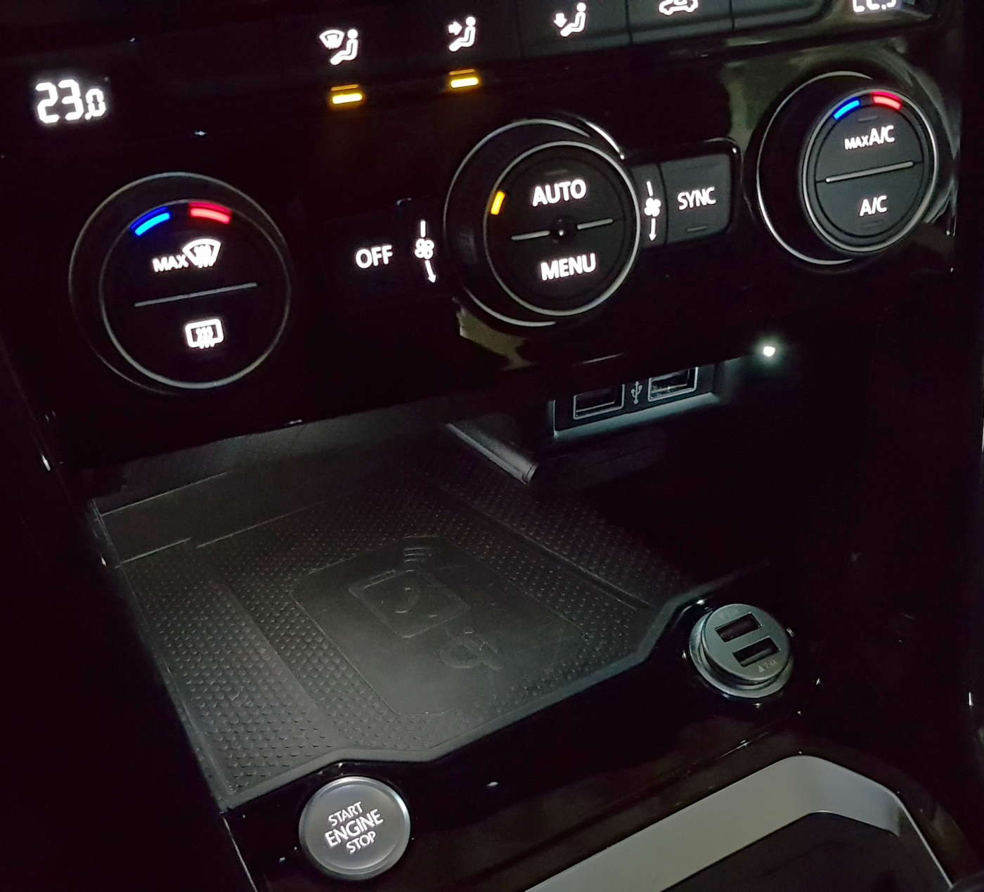 È dotato di pad Fast Charging da 15 watt a cui si aggiungono due porte USB di tipo standard (2A) e QC 3.0 per caricare altri dispositivi elettronici come tablet, auricolari Bluetooth, smartphone dei passeggeri, ecc.