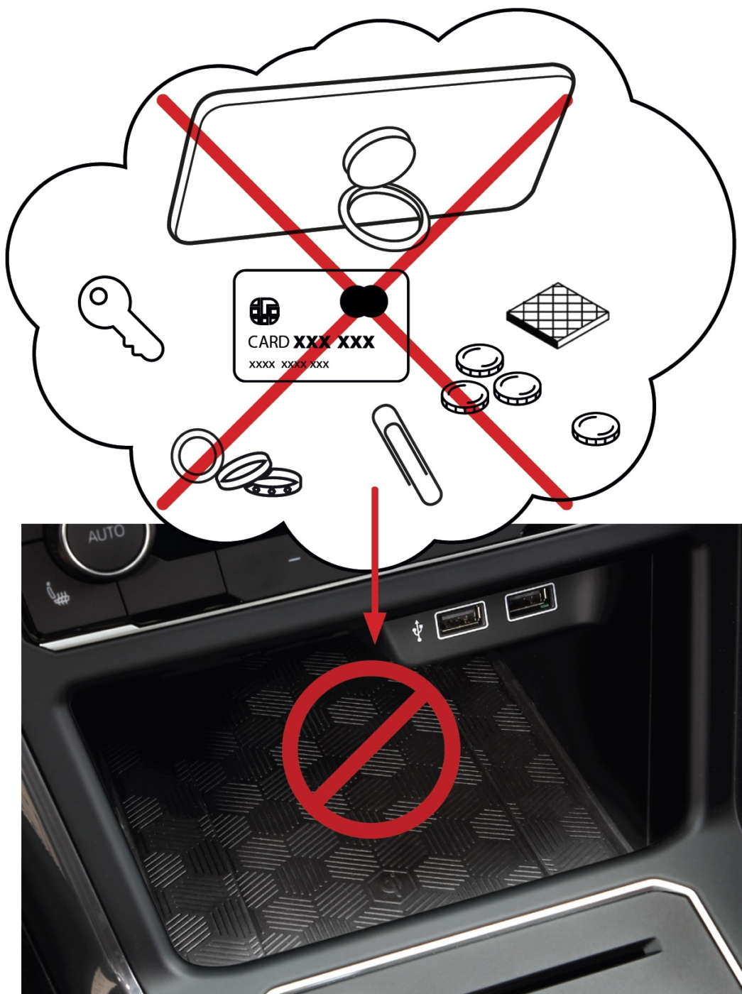 Sul tappetino di ricarica non vanno mai lasciati oggetti metallici come chiavi, monete, anelli e chip card poiché potrebbero danneggiare i componenti elettronici del caricatore e delle tessere.