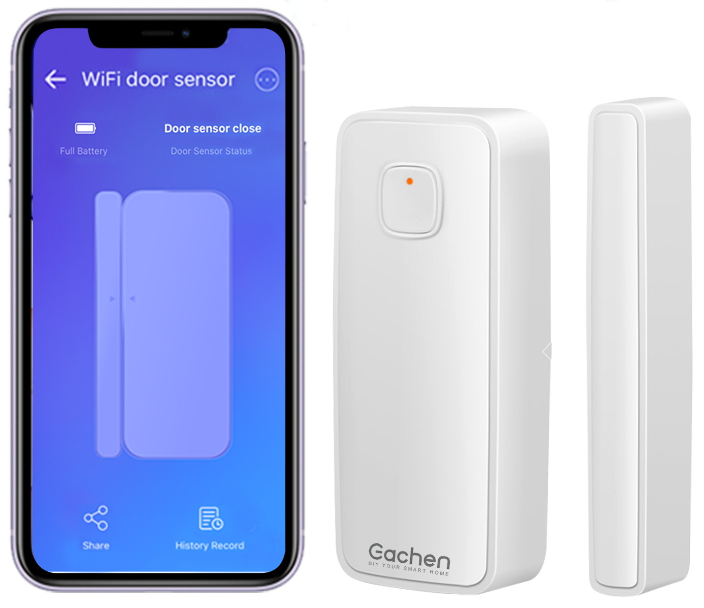 Si alimenta con una batteria a litio CR2032 (inclusa), supporta qualsiasi automazione (es.: luci smart accese in corridoio quando si apre la porta di ingresso), gli assistenti vocali Alexa e Google per notifiche di stato o allarme (es.: “Alexa, la porta del garage è chiusa?”).