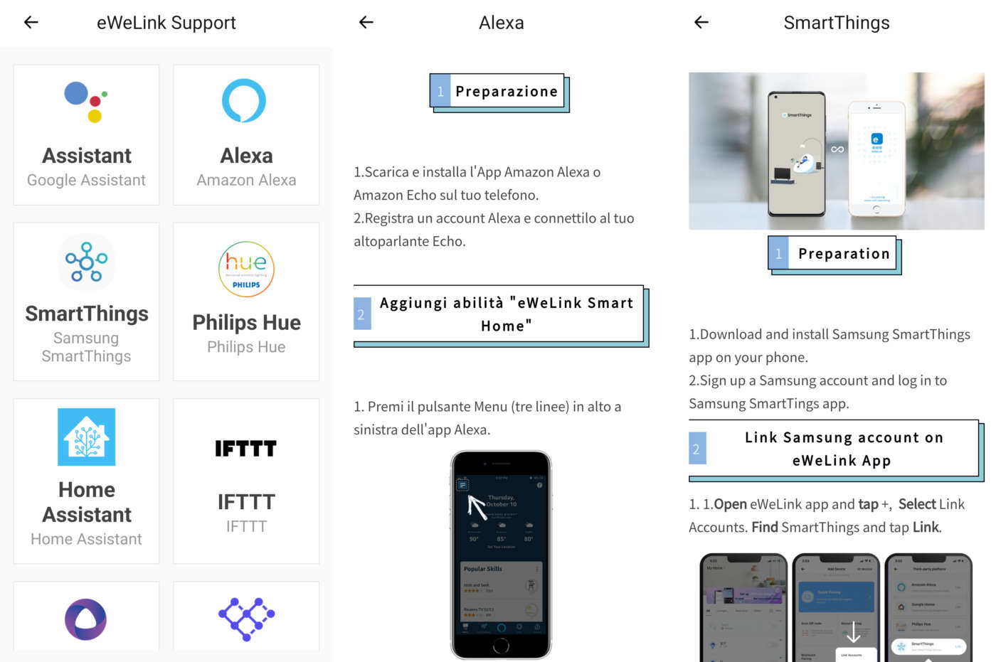 Per gestire il nuovo dispositivo da piattaforme o app terze (es.: Casa di Apple iOS, SmartThings di Samsung, ecc.) oppure con i comandi vocali (Alexa, Google, ecc.) serve solamente abbinare l’account della app proprietaria a quello di Apple, Samsung, Amazon e Google.