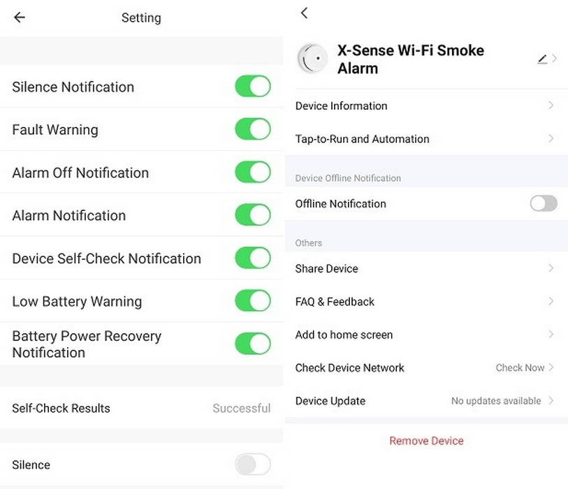 La app supporta anche la funzione mute (per zittire l’allarme da remoto) e la ricezione di notifiche per il corretto funzionamento del sensore (livello batteria, auto-test, ecc.).