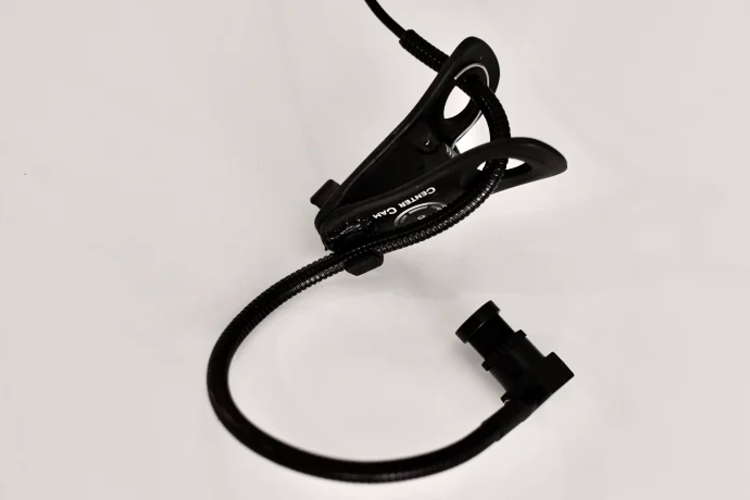 Center Cam affronta questo problema è lo risolve in modo efficace. Fermo restando caratteristiche tecniche di prim’ordine per l’ottica, l’attenzione del progettista Ian Foster si è concentrata sul supporto. Al posto della classica clip o dell’adattatore per monitor, una sistema sempre composto da clip ma al quale aggiungere una prolunga flessibile lunga circa tre centimetri. Posta alla fine di un comune cavo USB lungo invece dieci centimetri, permette di collocare la webcam centrale nel mezzo del monitor. O, più in generale, in modo da trovarsi in asse con i propri occhi.
