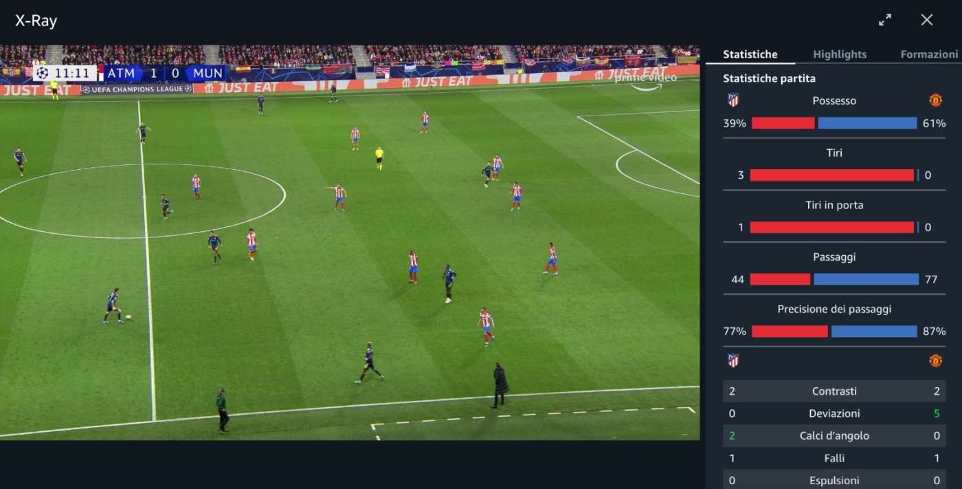 Prime Video arricchisce l’esperienza dei live match di UEFA Champions League grazie ad una nuova funzionalità: X-Ray. Disponibile su tutti i dispositivi web, mobile e su Smart TV attraverso la Fire Tv Stick, X Ray permetterà agli appassionati di sport di accedere in tempo reale con un solo click a statistiche (fornite da Opta), momenti chiave del match e formazioni delle squadre in campo. Attivando la funzione X-Ray, il live della partita non sarà né interrotto né messo in pausa in modo che i fan non si perdano nemmeno un secondo.