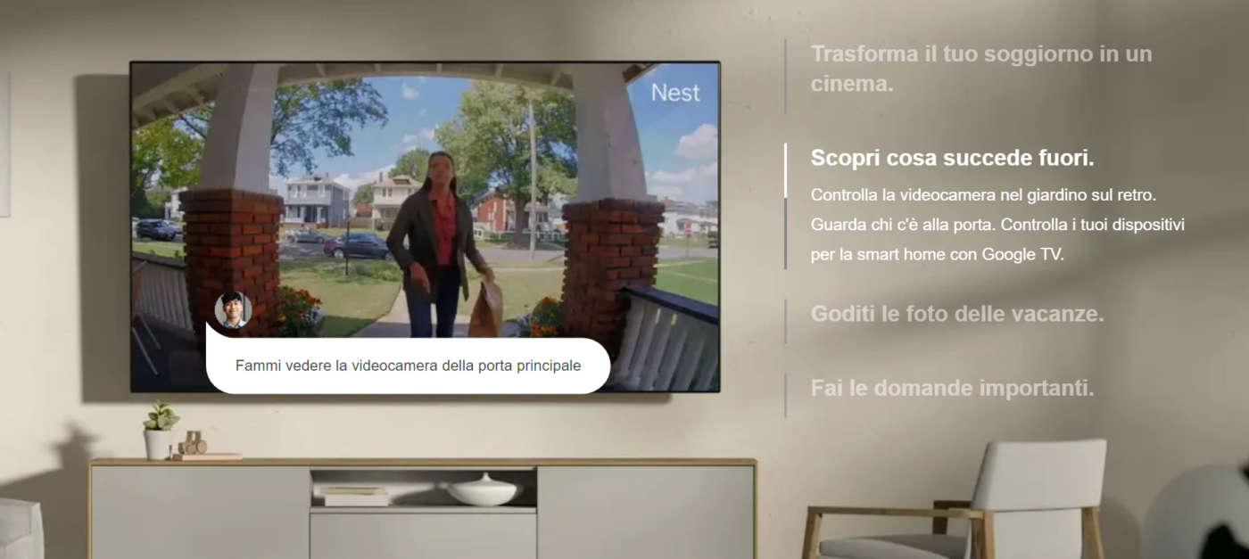 Basta impugnare il telecomando, premere il tasto dell’assistente Google e pronunciare qualsiasi comando domotico come “spegni le luci del salotto”, “imposta la temperatura della camera su 20°”, “mostra la telecamera della cameretta” o “accendi la macchina del caffè”.