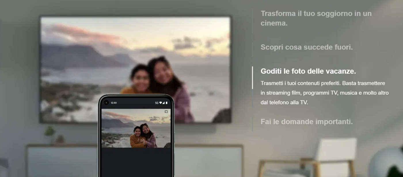 Altra dotazione tipica dei Chromecast (da sempre) è la funzione “mirroring” che serve a replicare le schermate di smartphone, tablet e PC sul televisore.