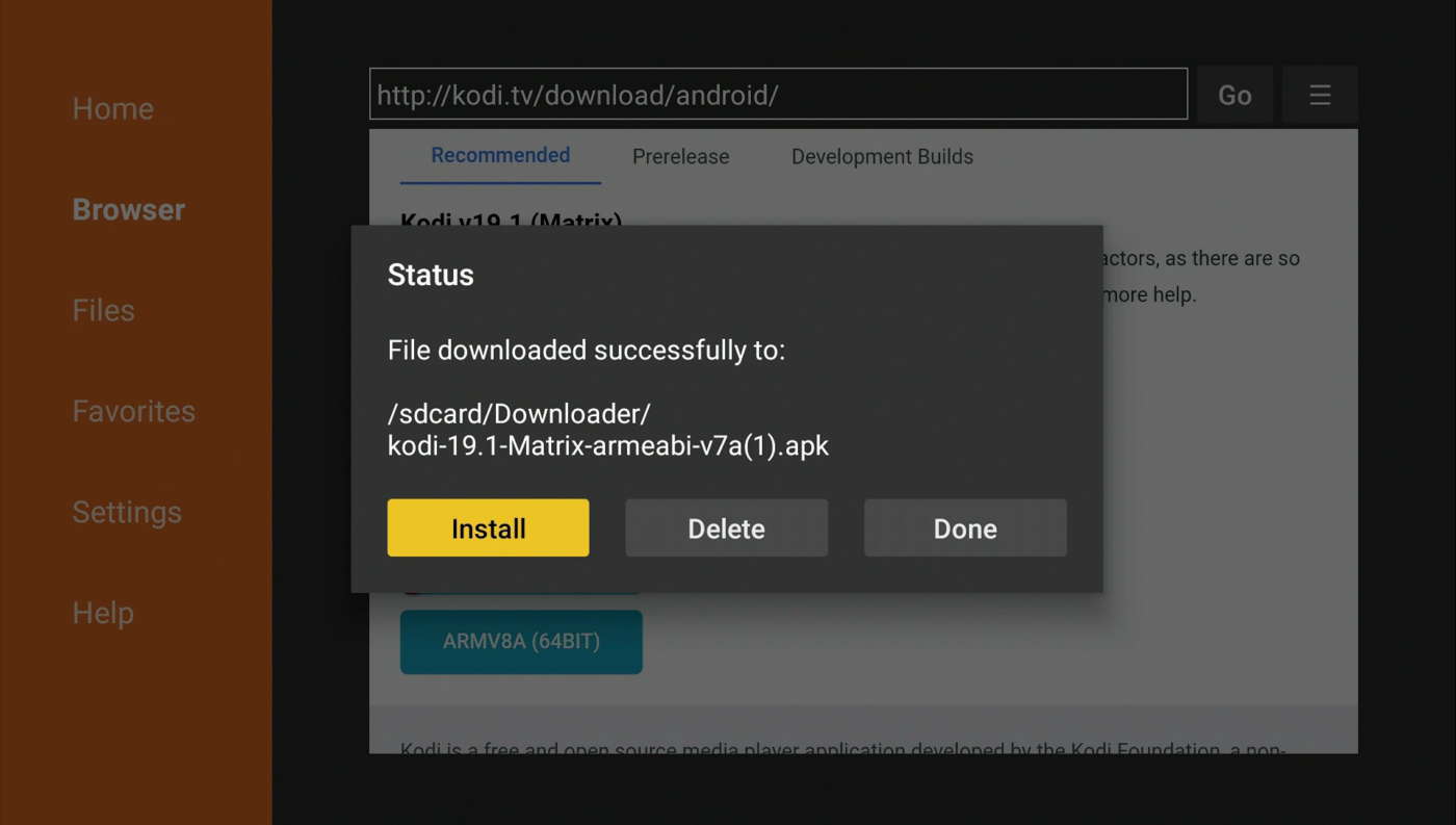 - Cliccare su Delete per cancellare il file apk appena scaricato (non la app installata) oppure Done per mantenerlo in memoria. Uscire da Downloader premendo il tasto Home;