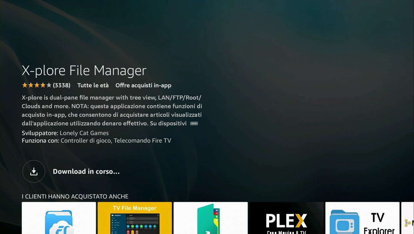 Questa guida è utile quando i file apk sono già stati scaricati su PC, NAS o altri dispositivi presenti nella rete LAN domestica. Grazie ai file explorer, ovvero le app che permettono di navigare nella memoria interna o esterna (es.: MicroSD, USB, ecc.), i file apk possono essere rilevati dalla Fire TV Stick e installati con un semplice click. Per questa procedura abbiamo testato due diversi file explorer. ES File Explorer è senza dubbio il migliore ma alcune funzionalità come l’installazione degli apk sono a pagamento (versione Premium). X-plore File Manager ha qualche funzionalità in meno ma permette di gestire gli apk anche nella versione gratuita e senza acquisti in-app.