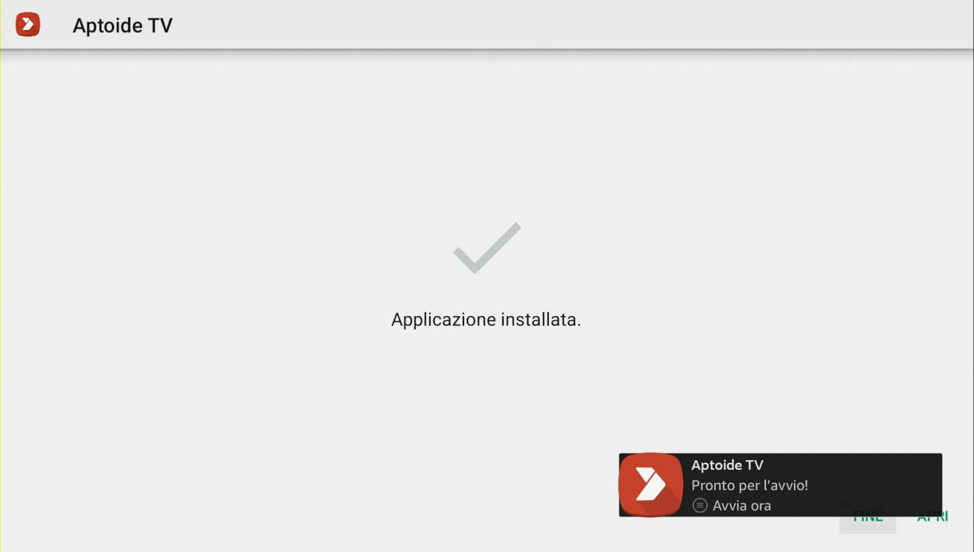 - Al termine cliccare su Installa, poi su Apri (per lanciare la app appena installata) oppure su Fine. Ritornare alla Home di Fire TV Stick.