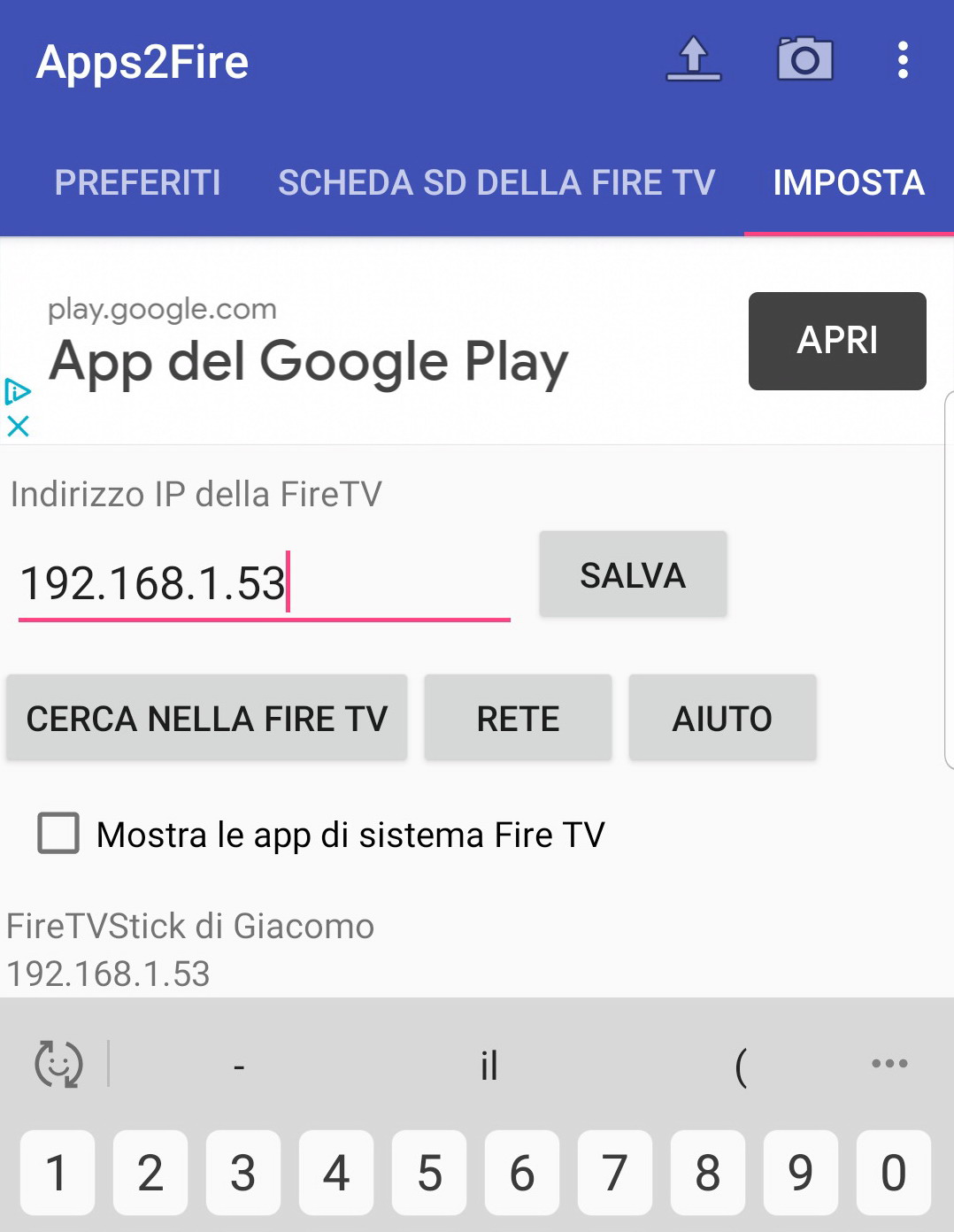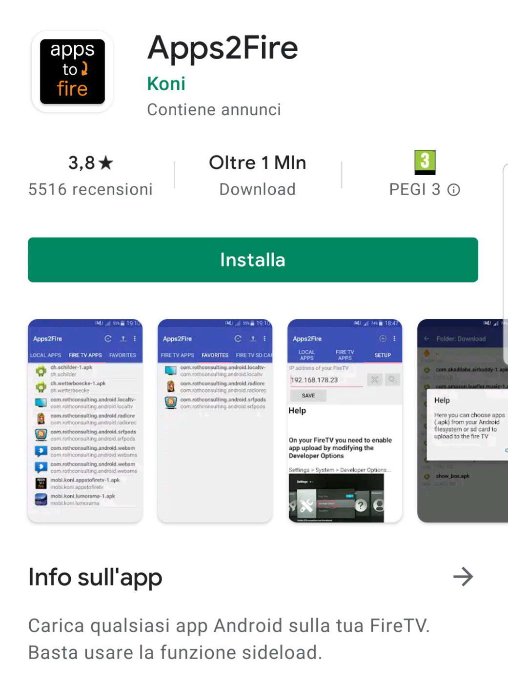 Questa terza ed ultima guida riguarda l’applicazione gratuita Apps2Fire: serve a copiare nella memoria interna della Fire TV Stick sia i normali file (apk, documenti, foto, video, archivi zippati, playlist M3U, ecc.) sia le app già installate nello smartphone o tablet Android. Per poter comunicare tra loro, la Fire TV Stick e lo smartphone Android devono essere collegati sotto la stessa rete Wi-Fi.