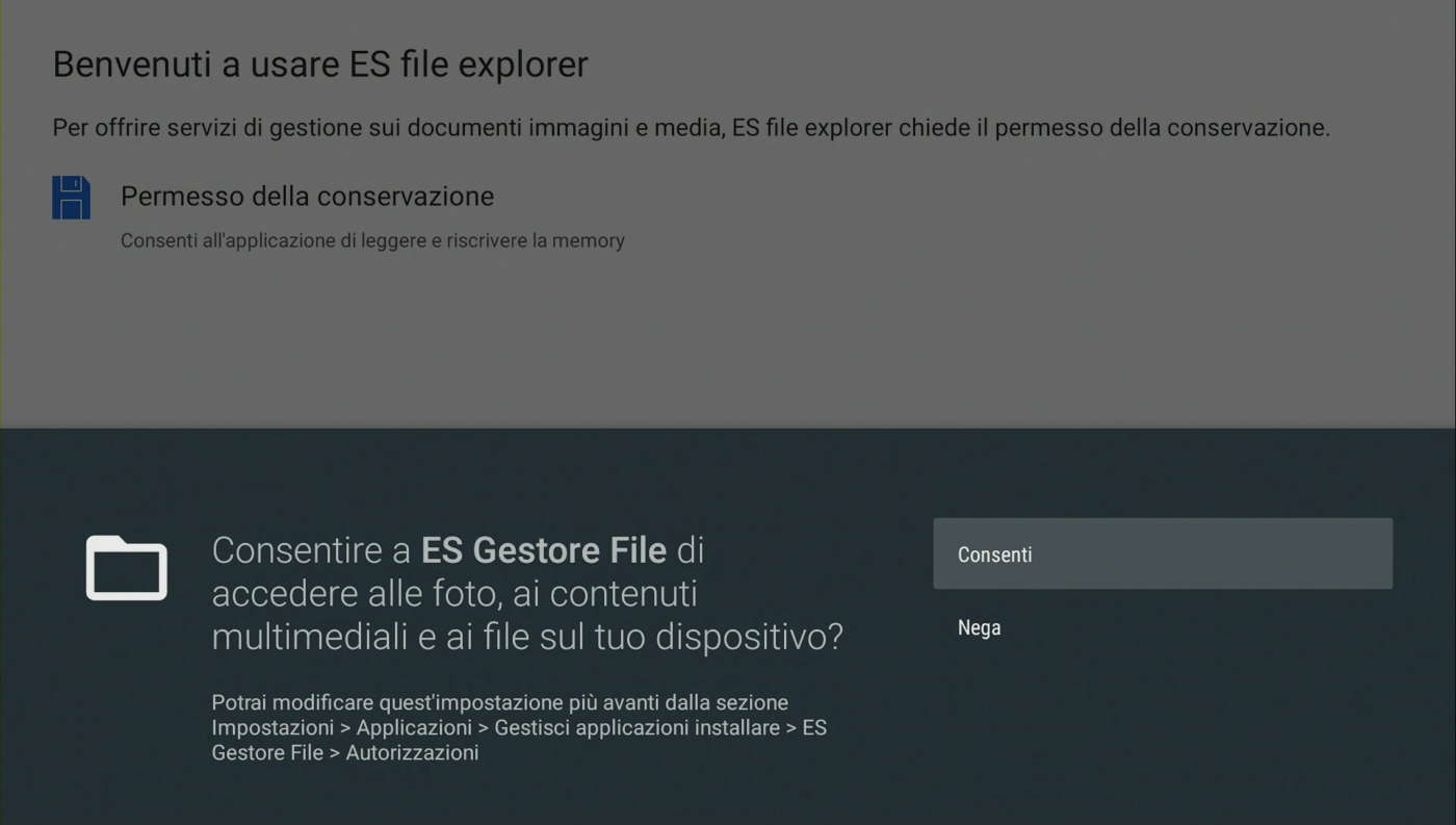 - Consentire i vari permessi per l’accesso alla memoria, alle foto, ai contenuti multimediali e ai file della Fire TV Stick e accettare i termini di servizio;