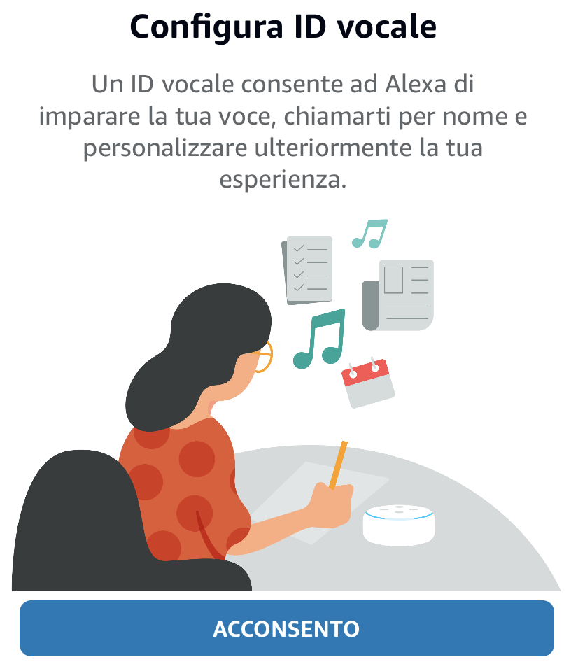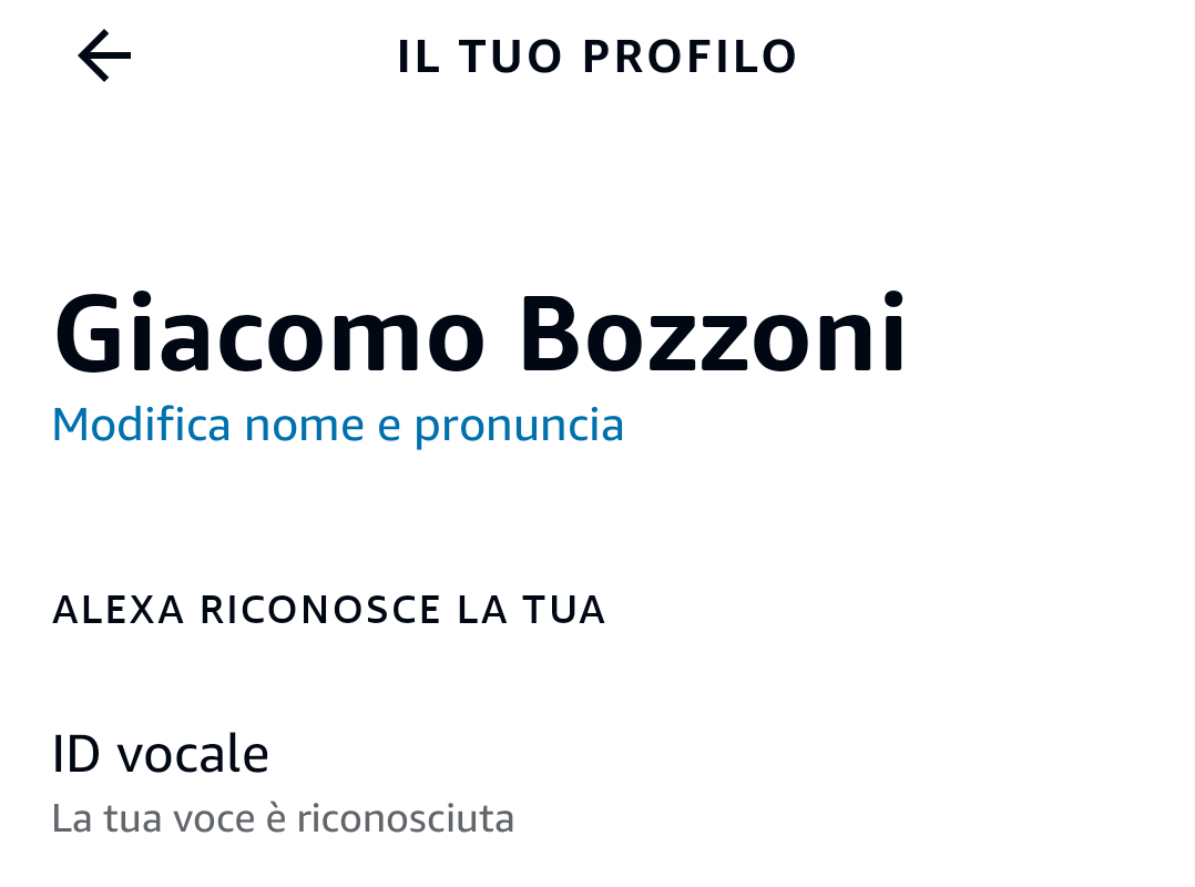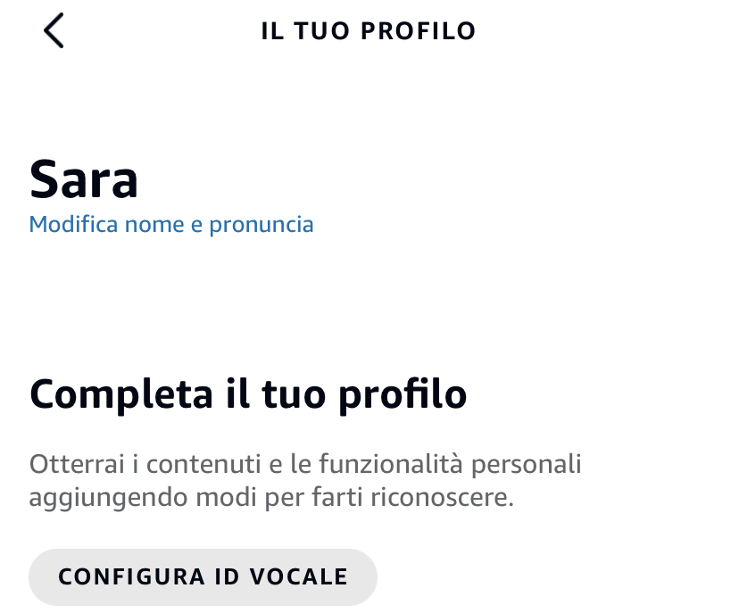 Dopo aver creato uno o più Profili Alexa corrispondenti a moglie, figli e altri componenti del nucleo familiare, potete procedere alla personalizzazione vocale e/o visiva.