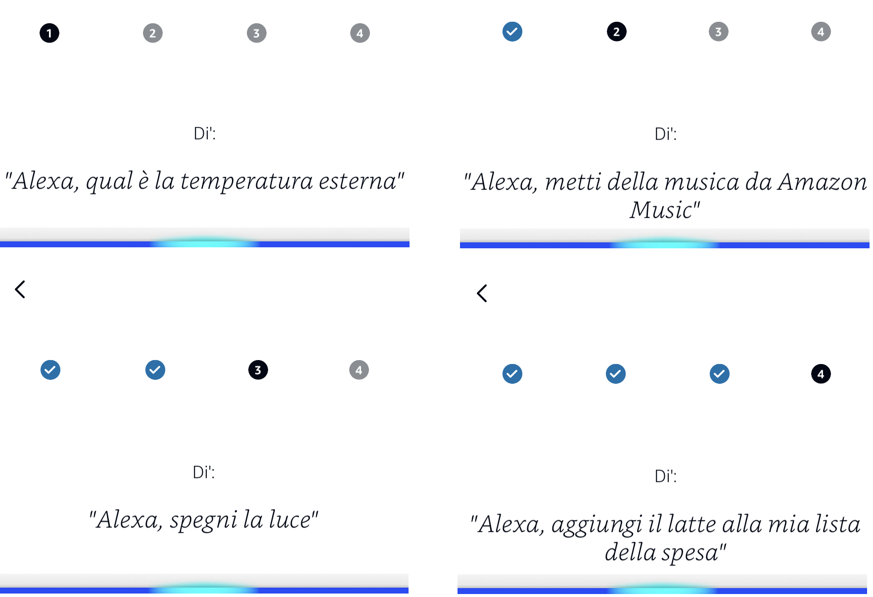 Attraverso le schermate della app o sul display del dispositivo Echo Show oppure con la sua voce, Alexa chiederà di pronunciare semplici frasi come “Alexa, qual è la temperatura esterna”, “Alexa, metti della musica da Amazon Music” e “Alexa, spegni la luce” per memorizzare il timbro della voce e distinguerlo da quello degli altri membri della famiglia.