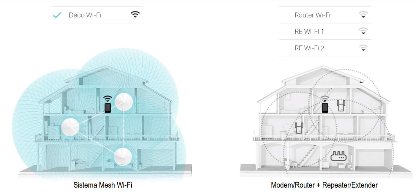 Gli Extender/Repeater Wi-Fi più performanti e tecnologici sono composti da uno o più moduli che comunicano tra loro per creare una “rete a maglia” (Mesh), molto più efficiente e intelligente di quella singola generata dai dispositivi visti finora.