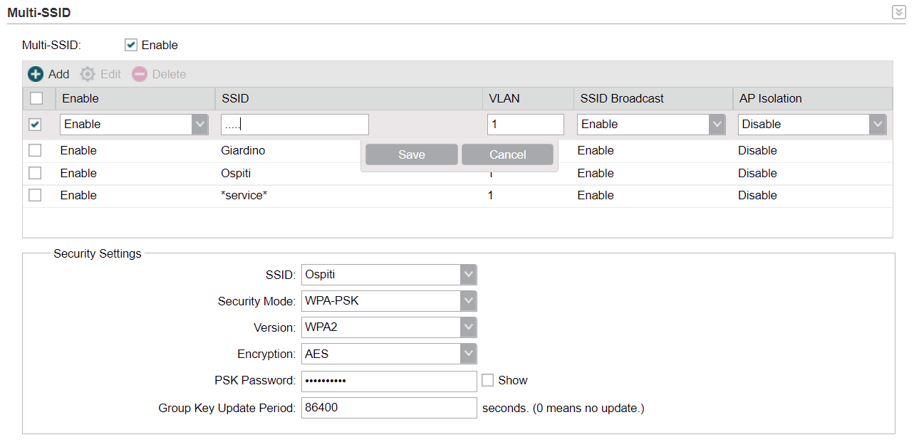 Altra comodità sono gli SSID multipli che fanno riferimento alla stessa rete Wi-Fi “fisica” ma con nomi, password e protezioni differenti per ragioni di compatibilità, sicurezza e organizzazione (es.: SSID “Giardino” e “Ospiti” con password diverse).