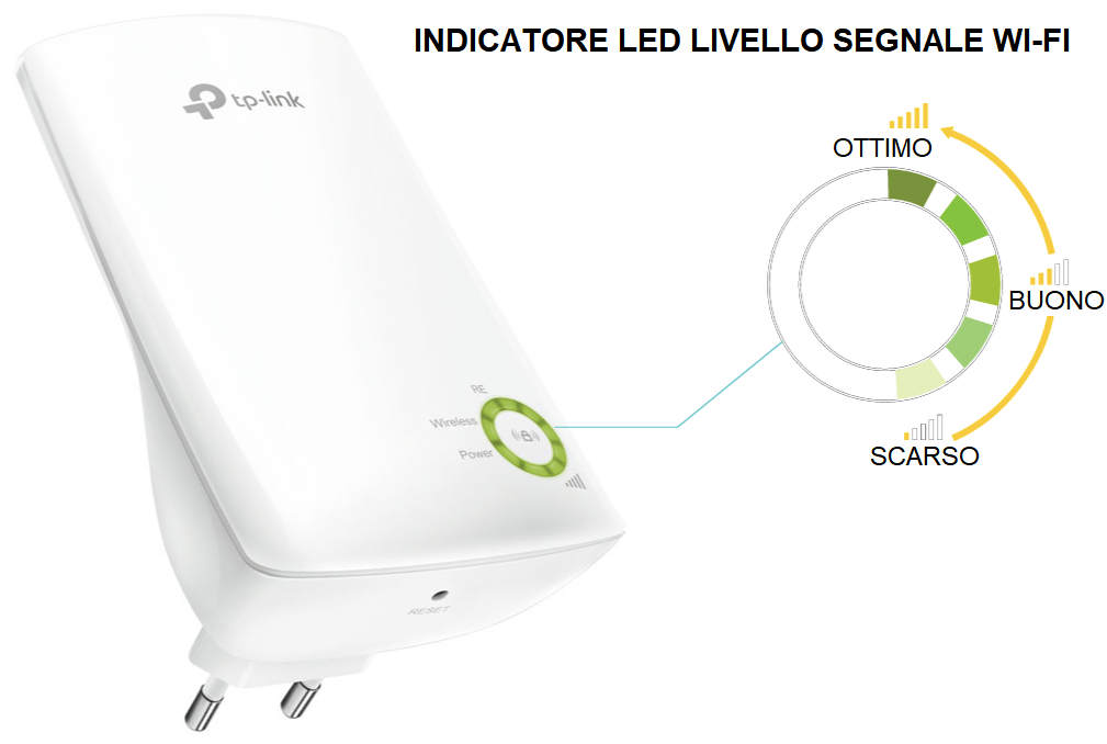 I led posizionati sul ripetitore aiutano a stabilire qual è il posizionamento migliore indicando lo stato della connessione e l’intensità di segnale.