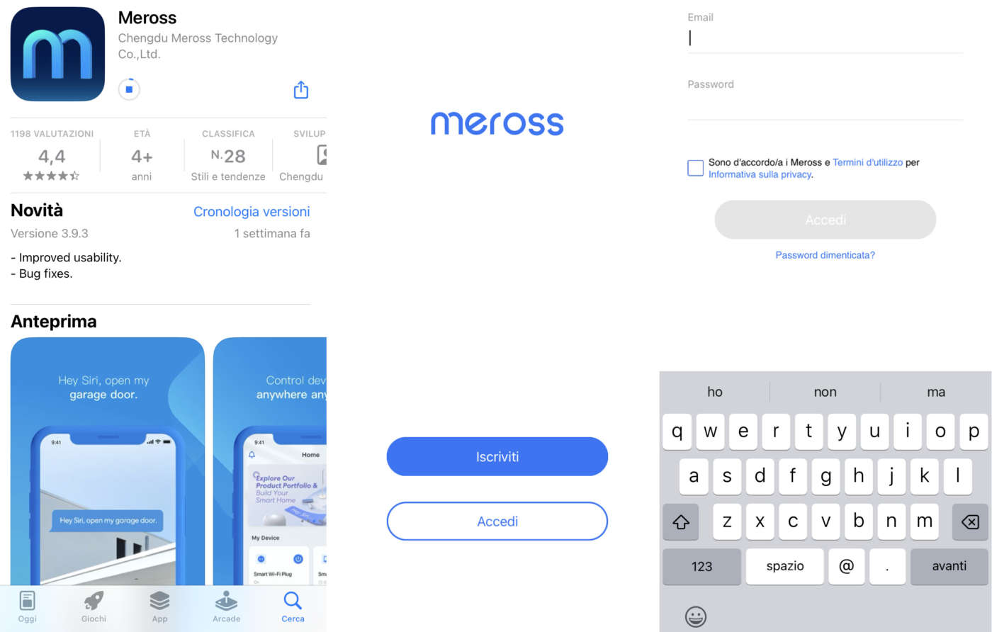 Per acquisire e configurare lo smart switch collegato al motore della basculante dovete innanzitutto prendere lo smartphone (oppure un tablet), scaricare la app consigliata dal produttore (Meross, eWeLink, Tuya Smart, ecc.) e creare un account personale.