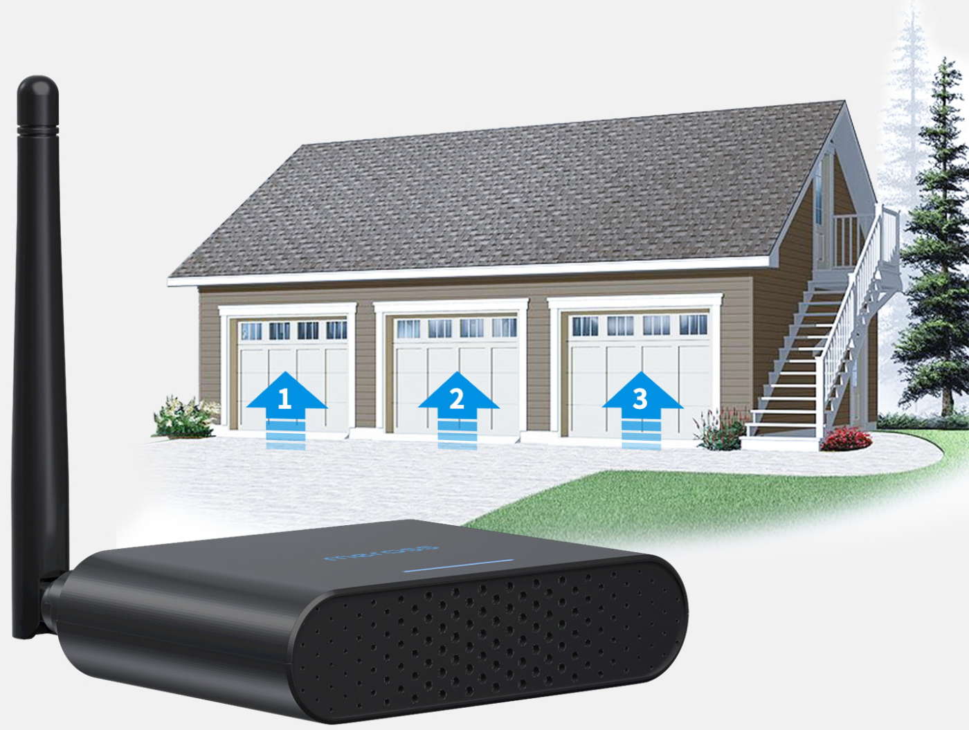 Lo Smart Garage Door Opener di Meross è disponibile anche nella versione PRO (modello MSG200 – 70 euro) con controllo indipendente di tre diverse serrande e antenna Wi-Fi esterna a lunga portata per garage interrati o esterni situati lontano da modem/router/extender Wi-Fi.