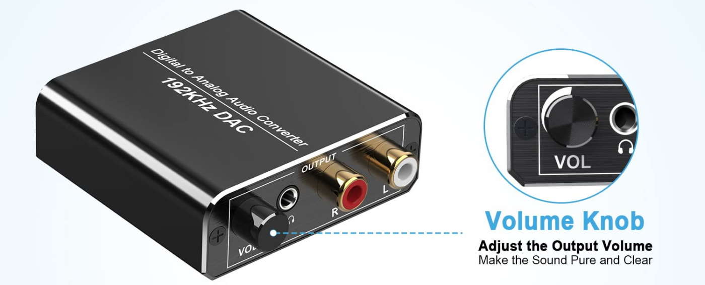 I convertitori digitali-analogici più avanzati includono anche la regolazione del livello audio tramite potenziometro (volume) che può agire solo sulla presa mini-jack (per le cuffie), sulle RCA/Cinch o su entrambe le uscite analogiche.