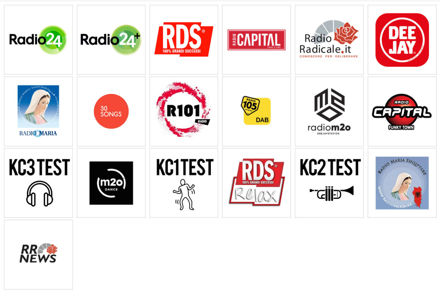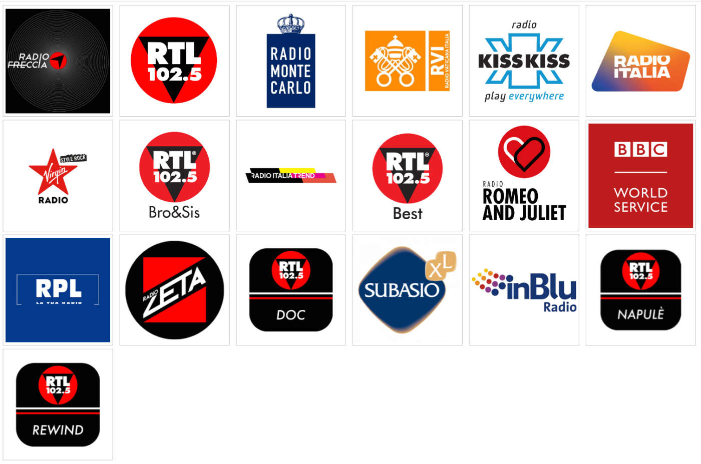 Radio News, Radio Jukebox, Italianissima, Radio Ricordi, Play Radio, Italia News 24 e altre.