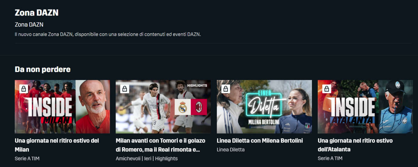 ZONA DAZN sono i canali televisivi “lineari” (cioè non on-demand) che ospitano numerosi contenuti sportivi di livello premium, non solo in ambito nazionale ma anche internazionale.