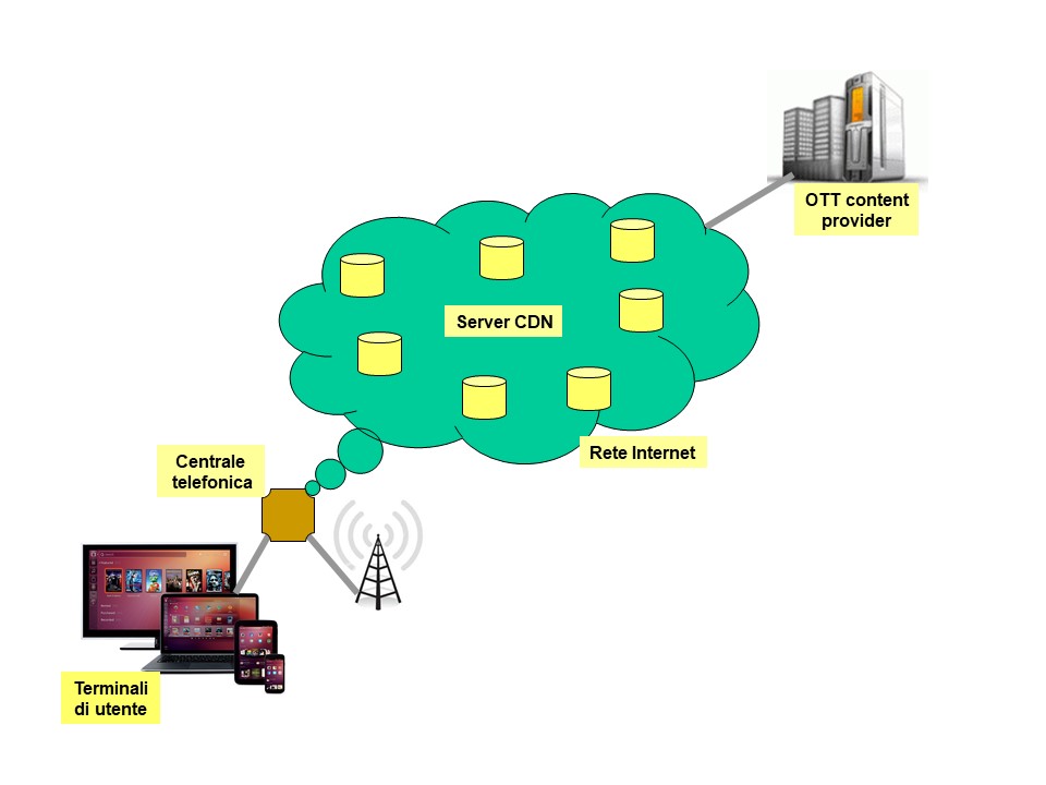Per inviare uno stesso video a milioni di utenti, senza sovraccaricare la capacità della rete, vengono inseriti in alcuni nodi del backbone dei server, denominati CDN (Content Delivery Network) che immagazzinano i contenuti continuamente tenuti aggiornati con velocità elevate per lo streaming live.