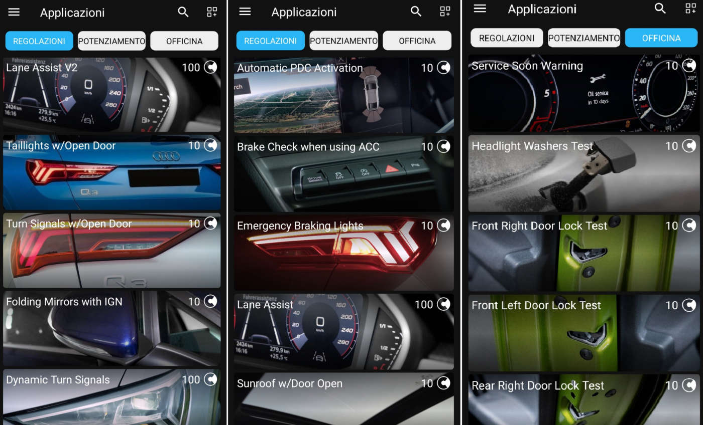 Agendo su queste impostazioni e parametrizzazioni si possono abilitare alcune funzioni avanzate (o di altri modelli) sulle vetture e gli allestimenti base, anche se non previsti tra gli optional a disposizione come ad esempio il riconoscimento dei segnali stradali tramite la telecamera sul parabrezza, l’assistente di corsia (Lane Assist), il cruise control, l’illuminazione interna multicolore, ecc.