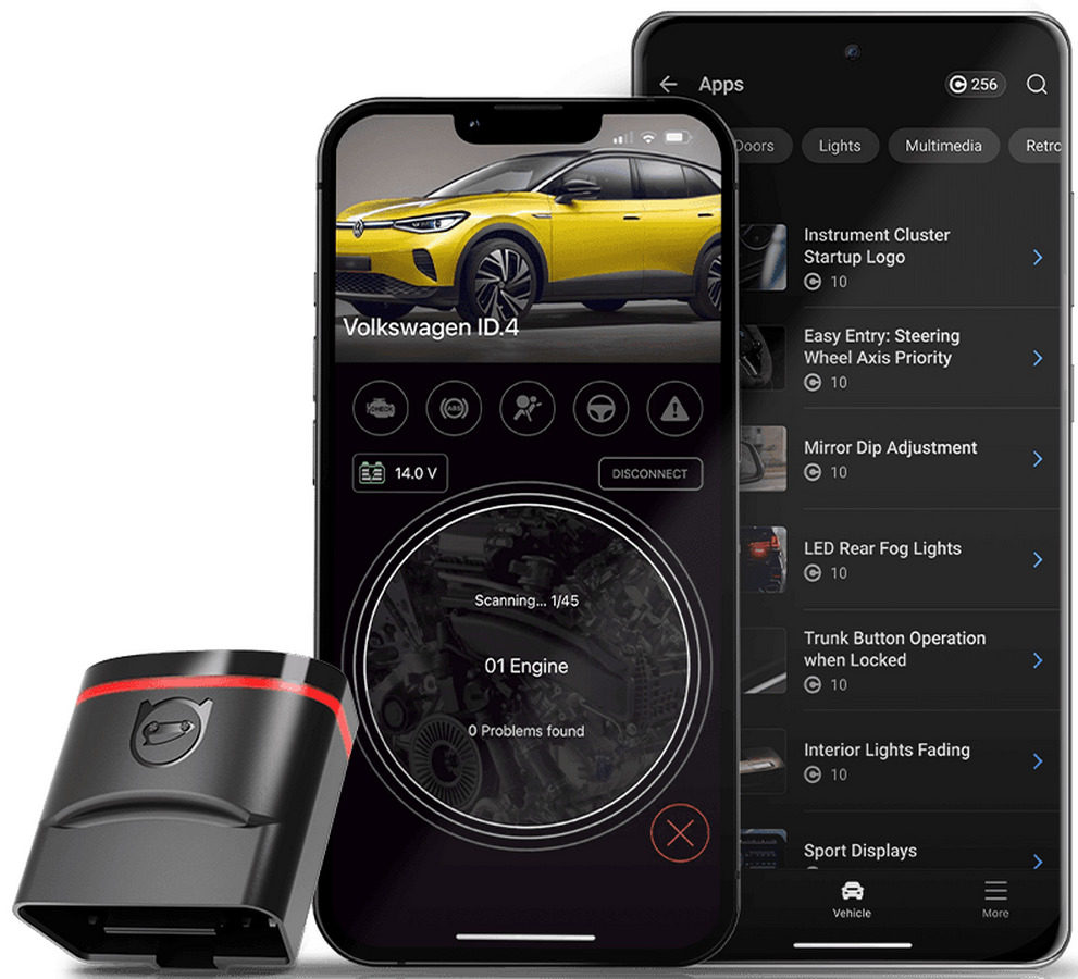 Altri dongle OBD2 come Carista e OBD Eleven sono specifici per gruppi di brand come BMW e VAG (Volskwagen, Audi, Skoda, Seat, Cupra, ecc.) e abbinati esclusivamente alla loro app. Oltre a garantire scansioni diagnostiche dettagliate ed affidabili offrono la possibilità di codificare e personalizzare le centraline e le funzionalità del veicolo (vedi sotto).