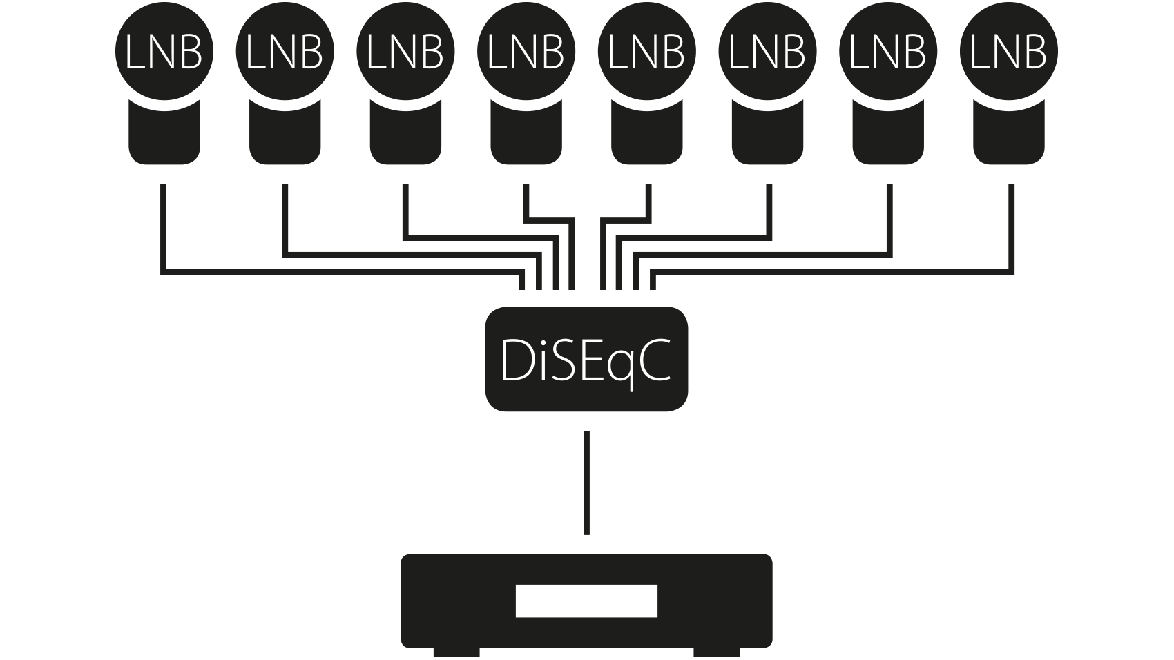 Mette in comunicazione tra loro decoder satellitari, LNB e motori, al fine di gestire la ricezione da due o più parabole, LNB e motori utilizzando un solo cavo coassiale.