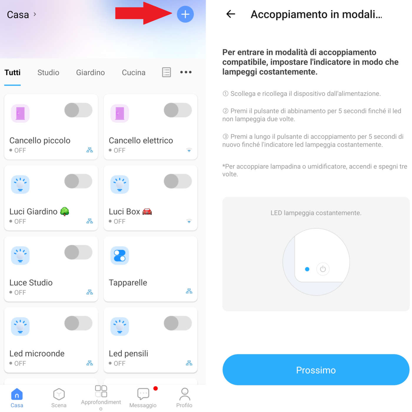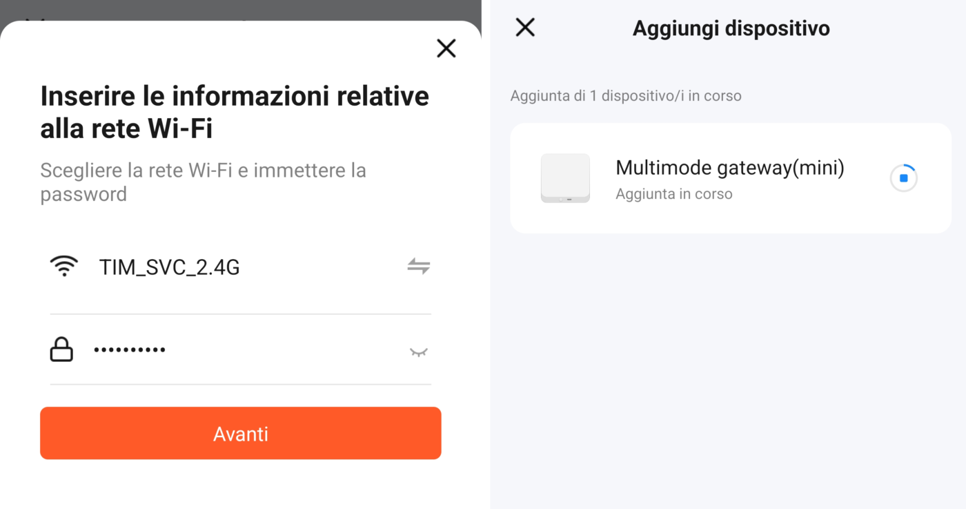 Impostate il primo dispositivo Zigbee in modalità acquisizione (tasto reset/pairing tenuto premuto per 5-10 secondi fino al lampeggio del led di stato) e attendete il riconoscimento automatico.
