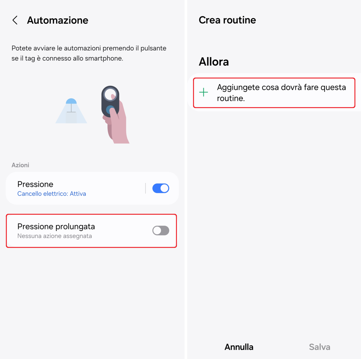 Accensione luci giardino/garage/casa con pulsante SmartTag 2 tenuto premuto