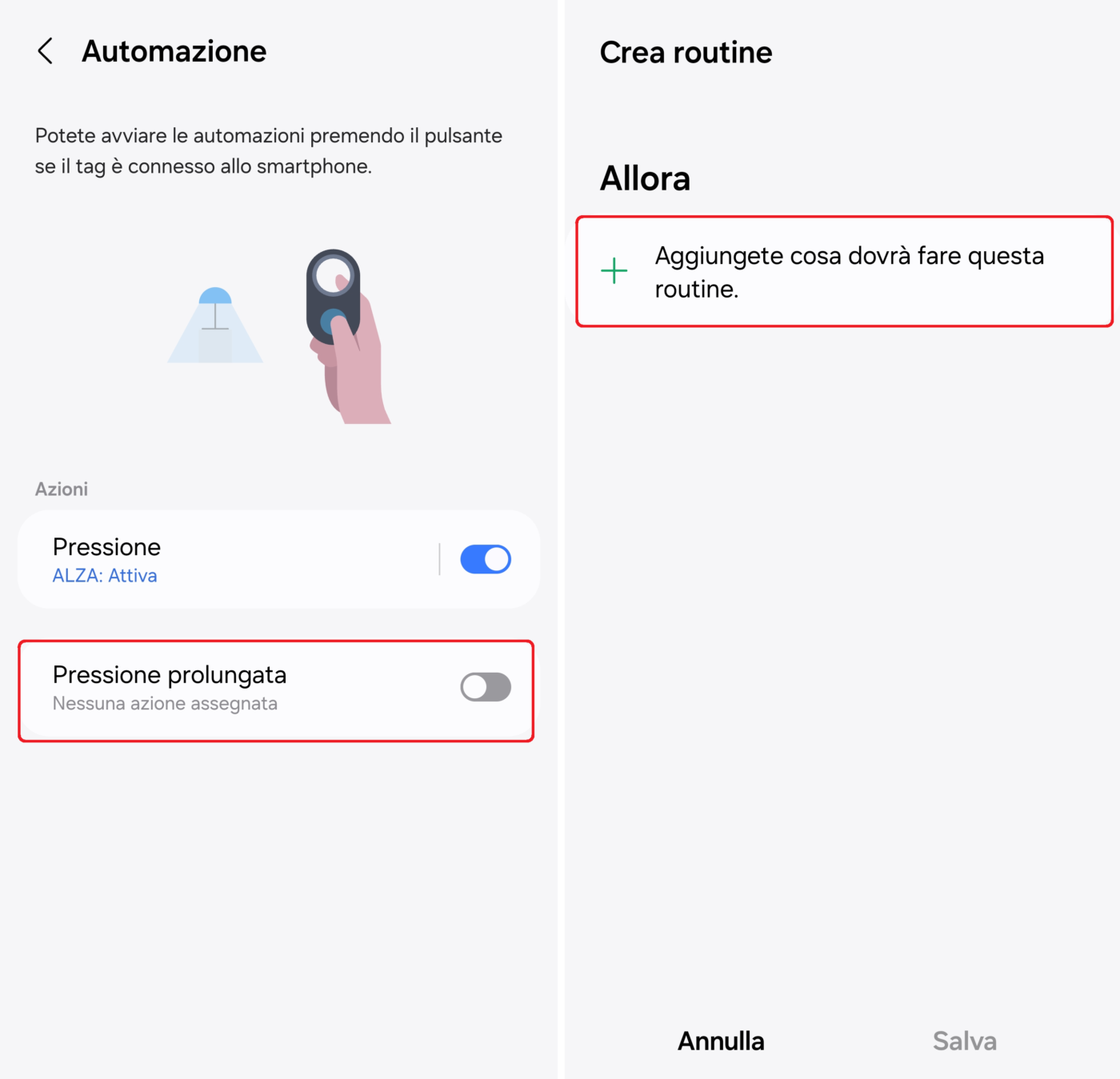 - Cliccate su Pressione prolungata nella scheda Automazione e poi su + (Allora);
