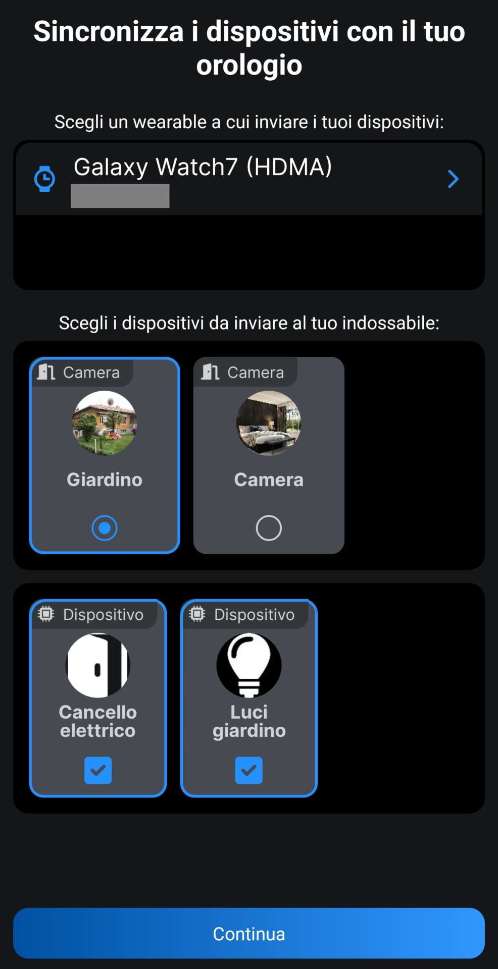 Prendete lo smartphone, selezionate i dispositivi da comandare con lo smartwatch e cliccate su Continua. La app sullo smartphone si chiuderà automaticamente.