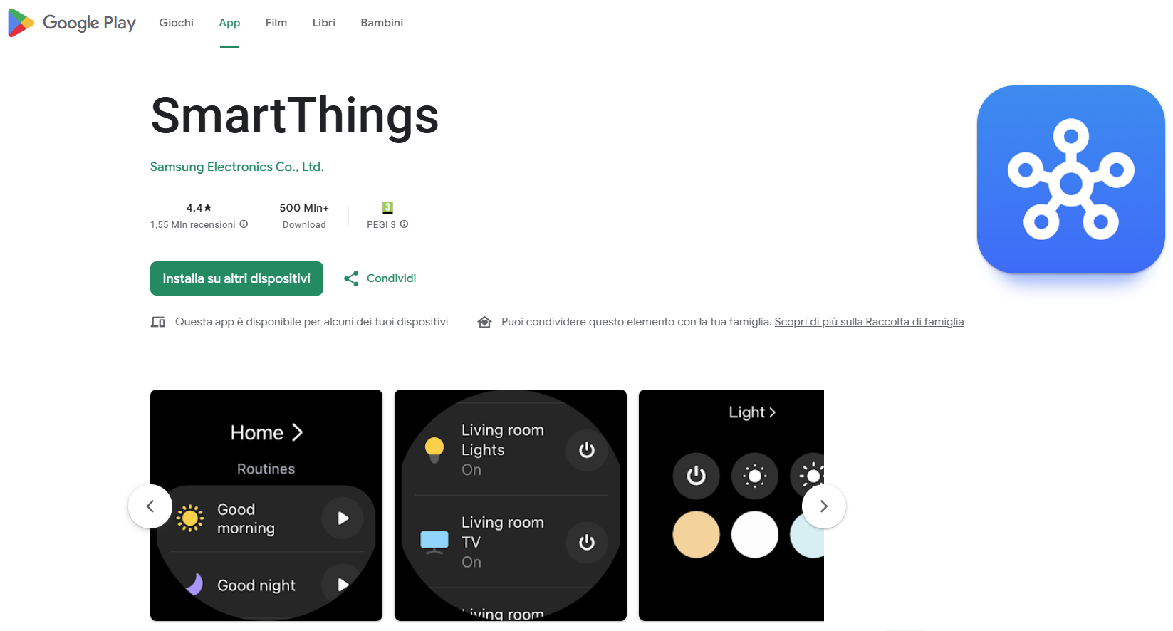 SmartThings è il controller universale e 100% gratuito di Samsung che serve a gestire tantissimi dispositivi smart attraverso smartphone, tablet, autoradio Android Auto e smartwatch.