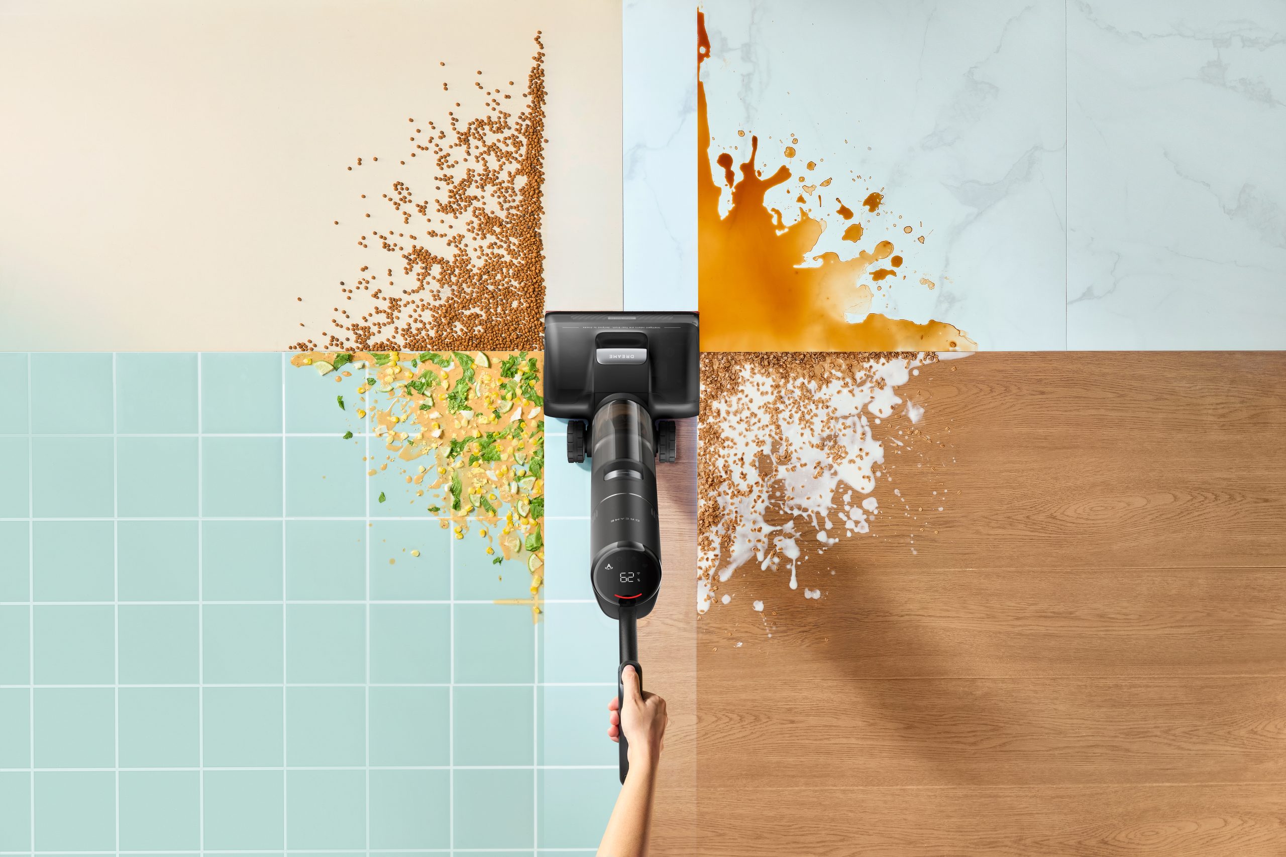Il sistema integra sensori RGB a cinque canali capaci di distinguere solidi e liquidi con precisione, regolando in autonomia il dosaggio di acqua e detergente in base al tipo di sporco. Grazie alla tecnologia GapFree 2.0, il lavapavimenti è in grado di raggiungere bordi e battiscopa con una precisione millimetrica, mantenendo sempre la stessa potenza di aspirazione.