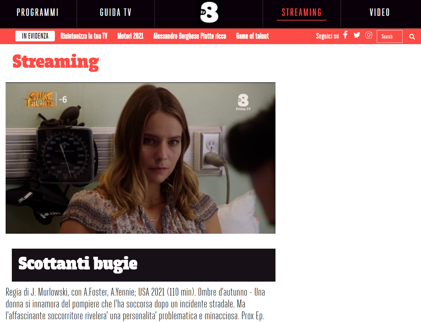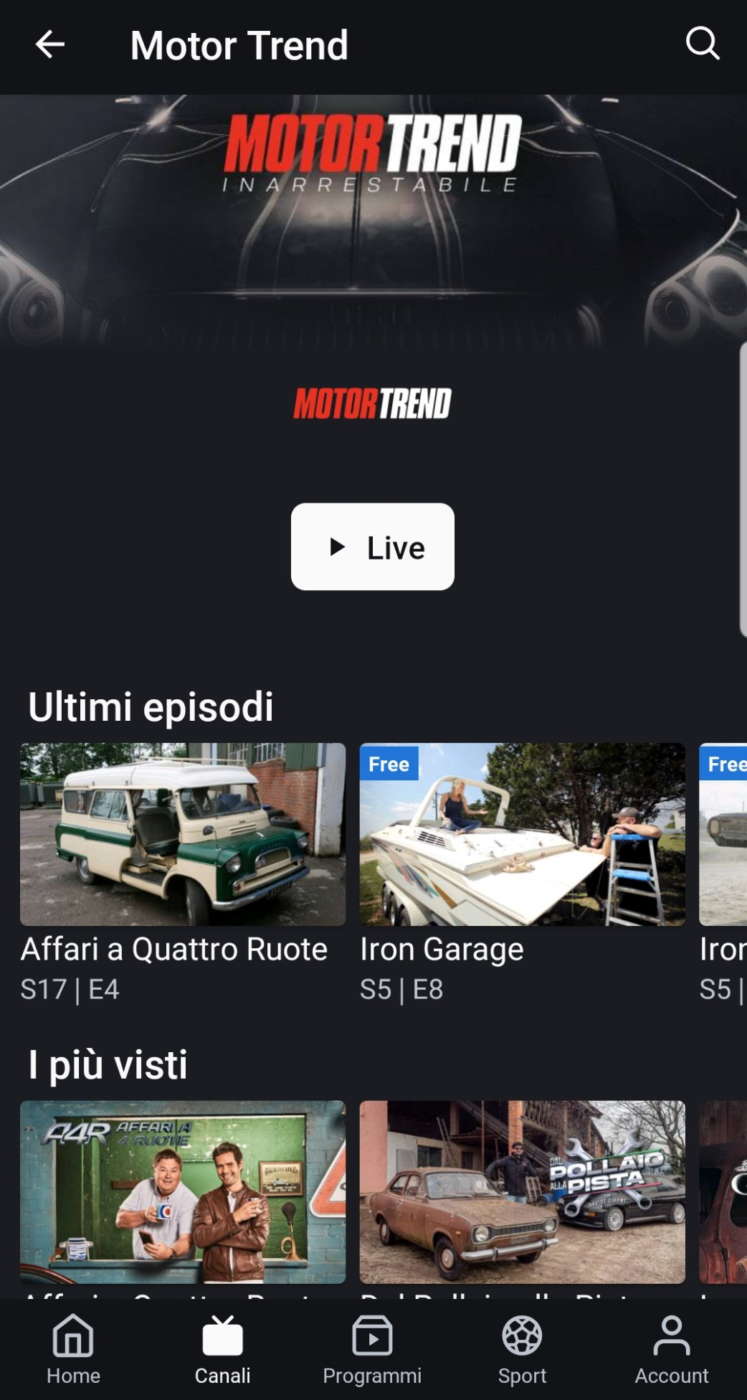 Oltre alle dirette troviamo le schede dei programmi con gli approfondimenti, la guida Tv (EPG) con il link diretto allo streaming e tanti videoclip dedicati ai programmi più famosi come Italia’s Got Talent o agli eventi motoristici (F.1, MotoGP, Superbike).