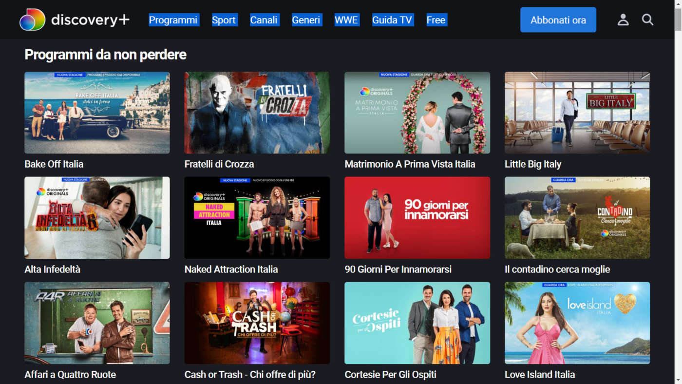 Se non siete interessati ai contenuti Discovery+ Originals, al meglio del crime e dei documentari e allo sport in diretta e on demand di Eurosport 1 e 2, il pacchetto gratuito è già sufficiente per vedere i principali canali DTT come Real Time, DMAX, Food Network, Nove, Motor Trend, Home & Garden TV (HGTV), Giallo, Frisbee e K2.