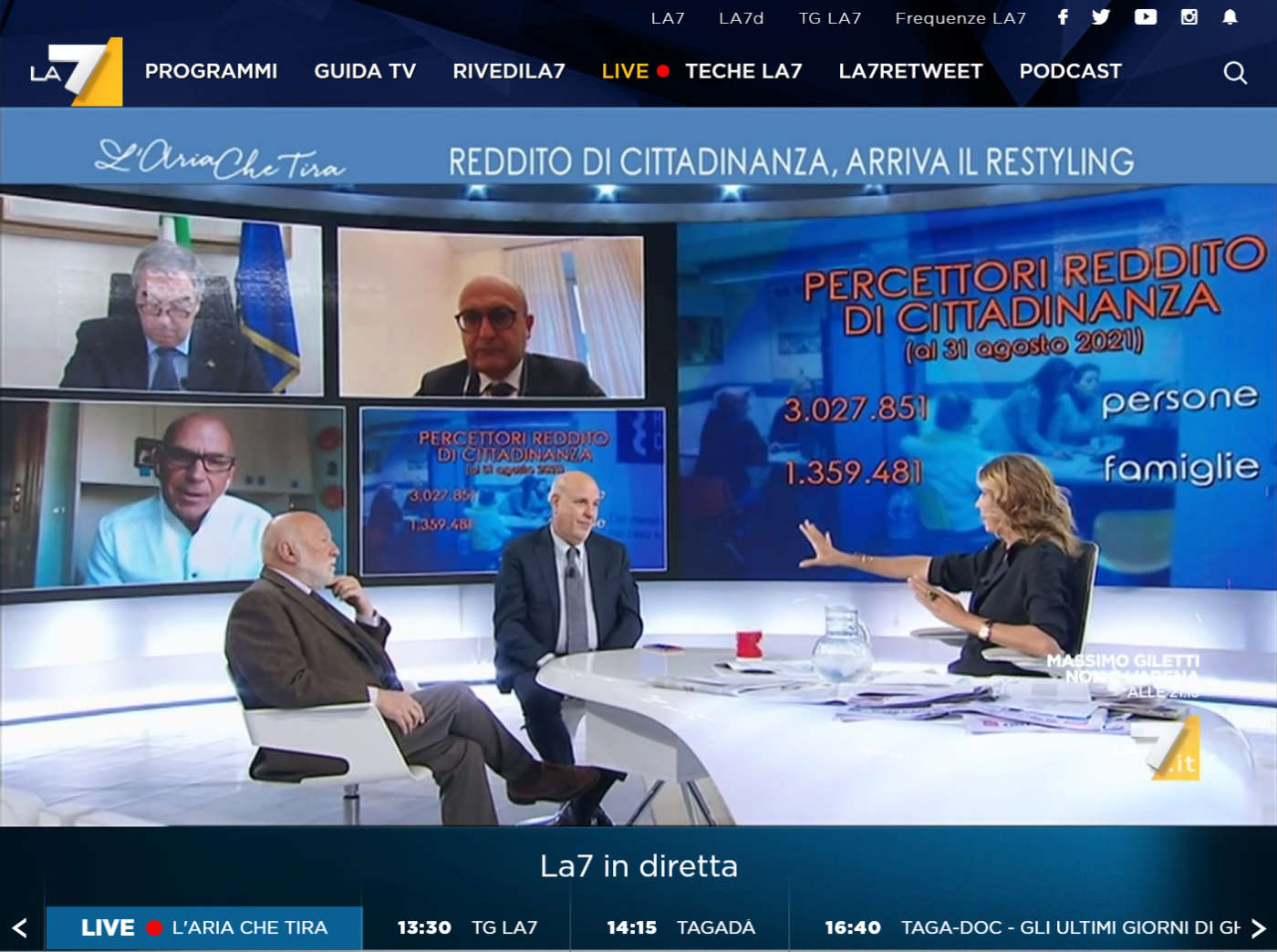 Anche La7 trasmette la propria programmazione in live streaming su web, app Android/iOS, smart Tv e decoder interattivi MHP/HbbTV, senza bisogno di un’antenna terrestre o satellitare.