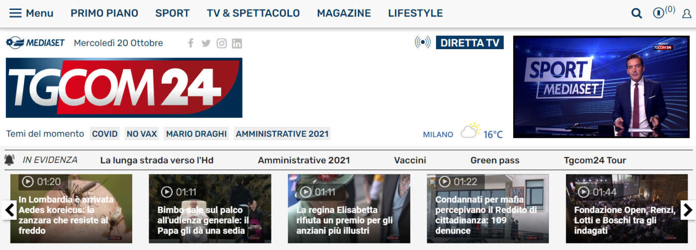 Oltre che su Mediaset Infinity, il canale all-news di Mediaset TGCOM24 è disponibile in live streaming sul proprio sito web e su app Android/iOS. La home page ospita anche le ultime notizie, articoli, video, foto, infografiche e altri contenuti aggiornati in tempo reale.