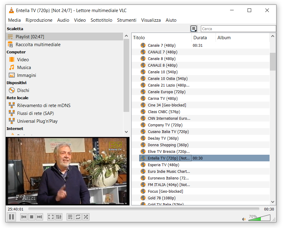 La lista dei canali italiani è scaricabile qui in formato M3U.