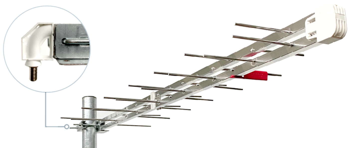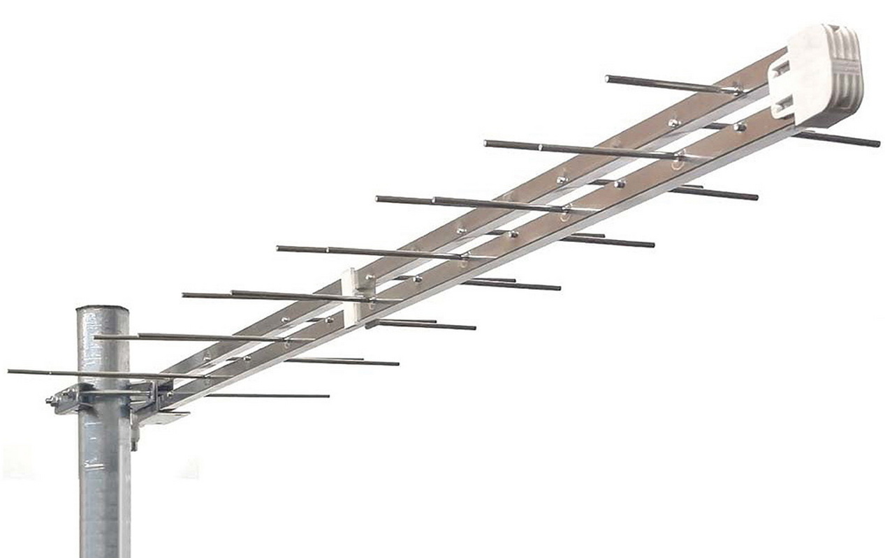 Si tratta di un’antenna di ridotte dimensioni (solo 40,5 cm di lunghezza) con 12 elementi e 4 riflettori a filo adatta all’installazione a finestra, balcone o tetto nelle zone con segnali UHF particolarmente forti nella banda C21-C48.
