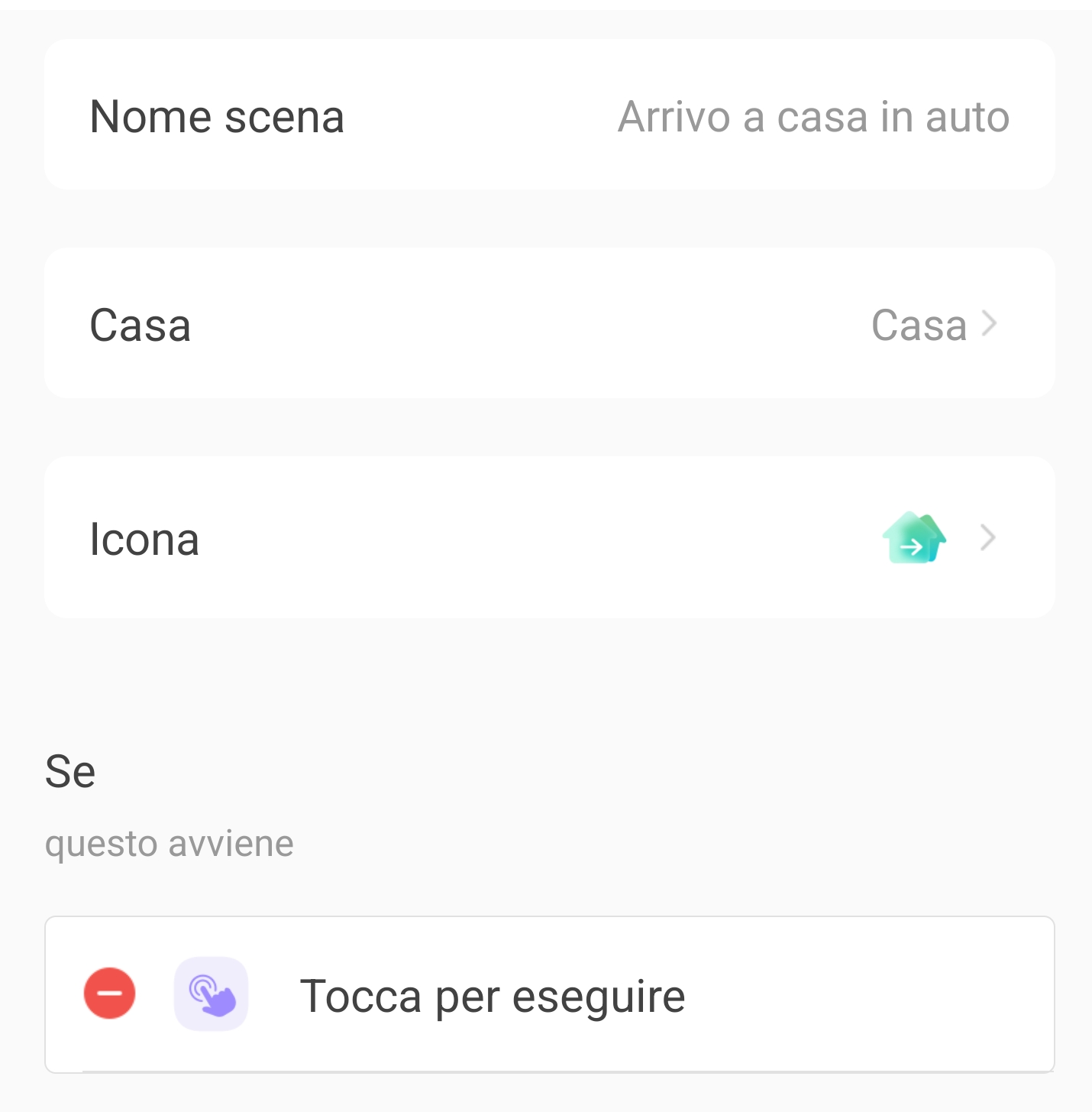 1. Testate lo scenario appena creato e, se qualcosa non funziona oppure volete apportare qualche modifica, riconfiguratelo con un semplice click oppure disattivatelo toccando il comando on/off (slide azzurro/grigio).