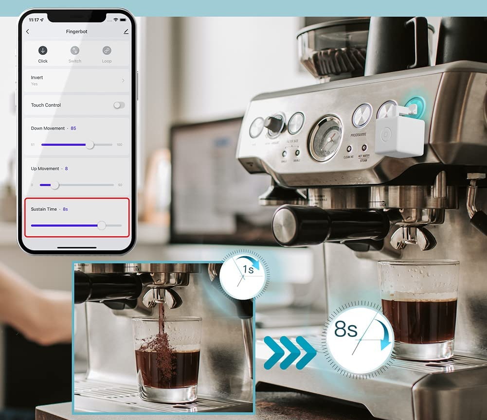 Sono perfetti anche per automatizzare pulsantiere per l’apertura di serrande (ad esempio in garage), computer, stampanti, lavatrici, asciugatrici, macchine per il caffè e qualsiasi altra apparecchiatura elettrica ed elettronica dotata di pannello comandi e di spazio sufficiente per ospitare il Finger-bot e il suo braccio meccanico posizionato sul pulsante da comandare.