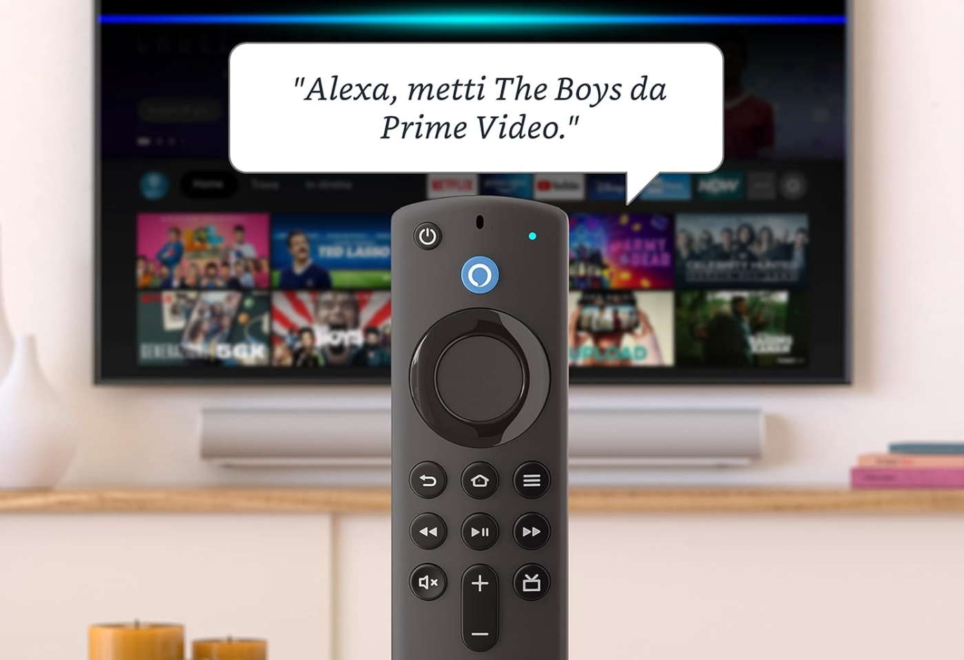 Tutti i modelli di Fire TV Stick (e Cube) attualmente a listino sono dotati di telecomando Bluetooth con microfono e tasto dedicato all’assistente vocale Alexa.